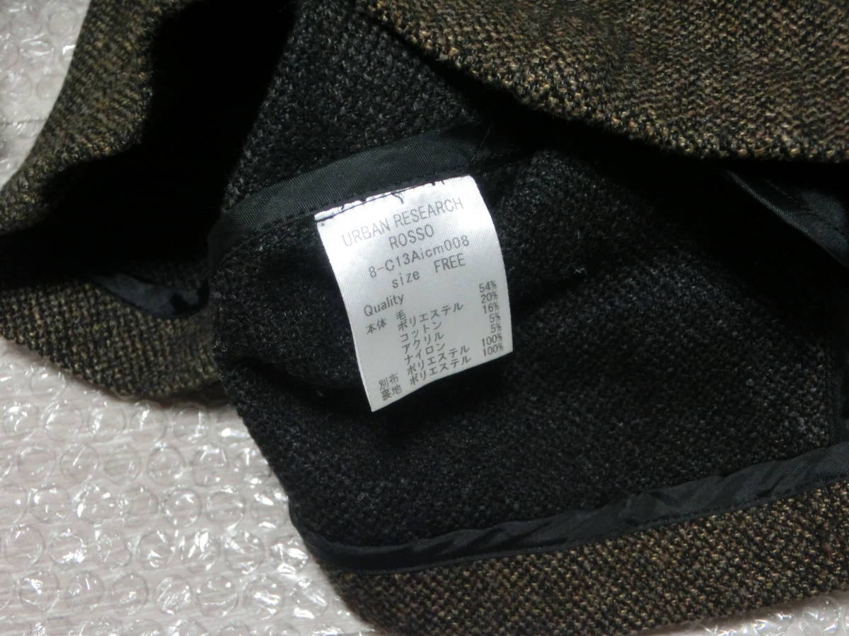 ROSSO ロッソ/アーバンリサーチ/テープ使いウール混ノーカラーブルゾン♪茶系Xクロ/sizeF/定形外可