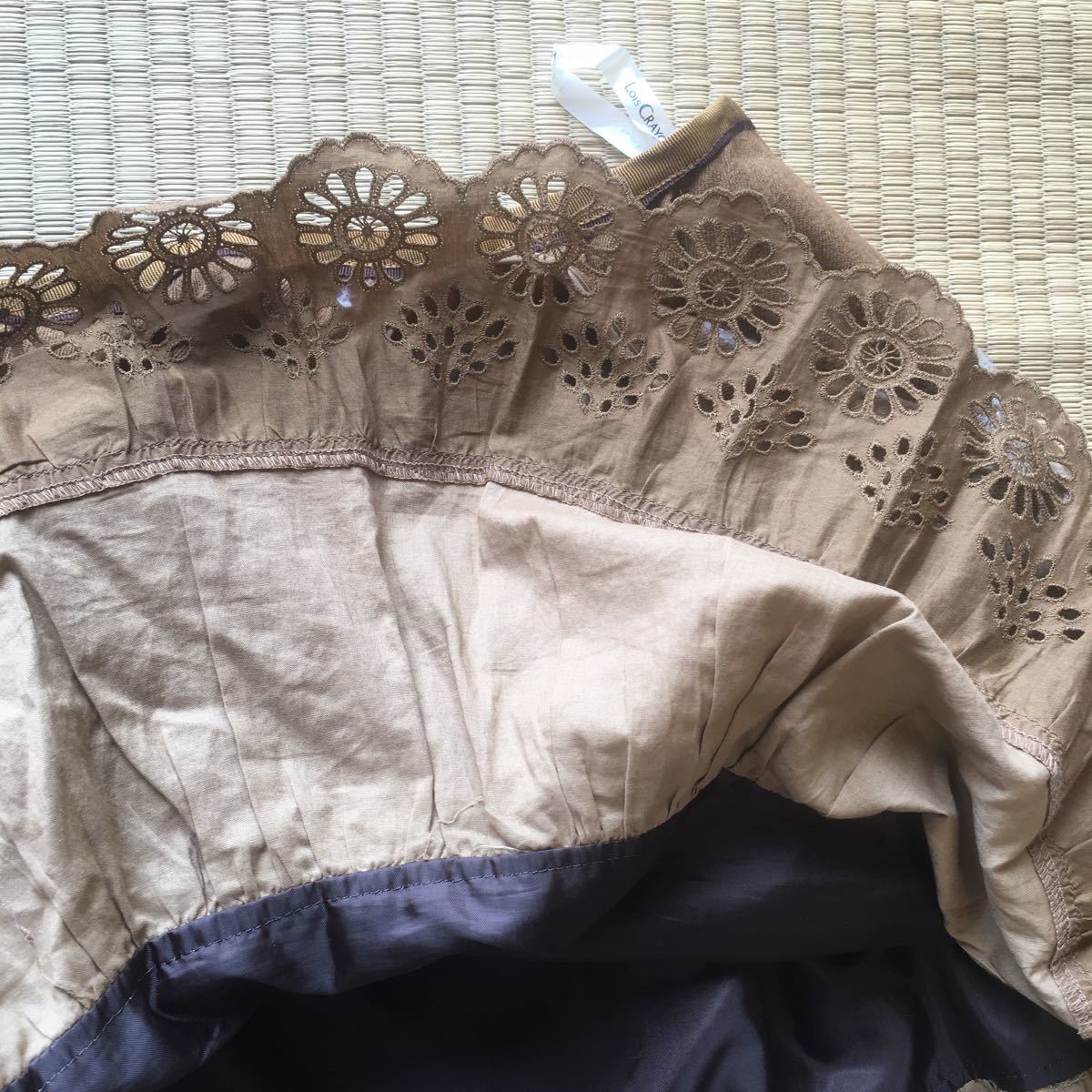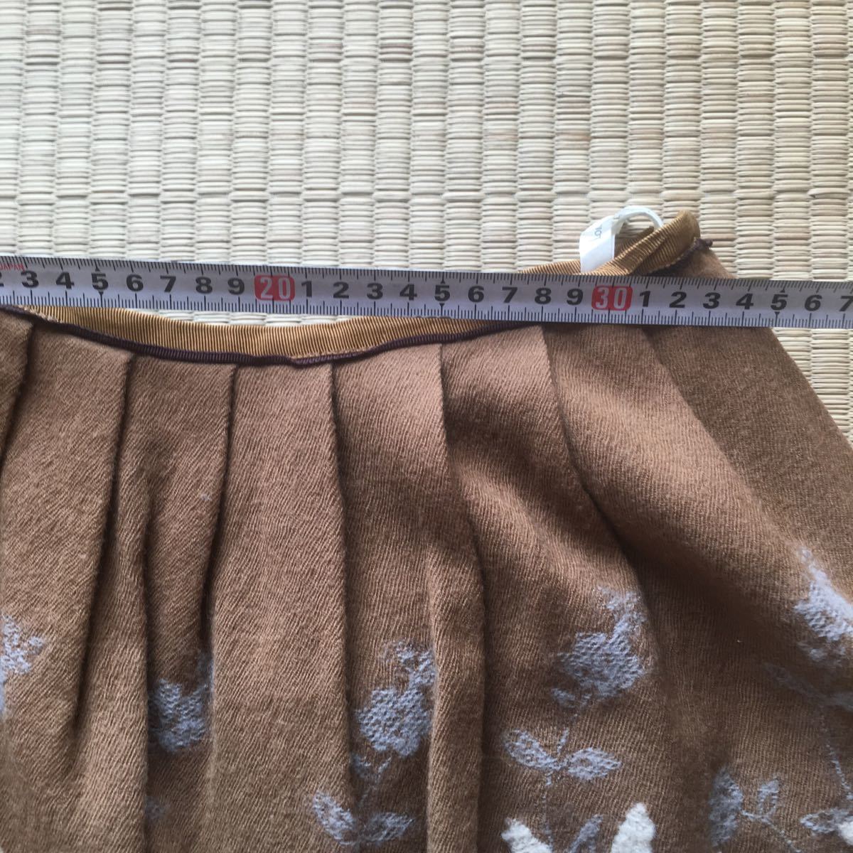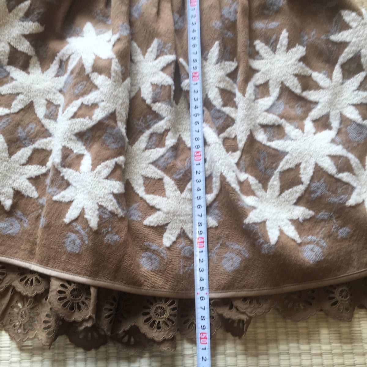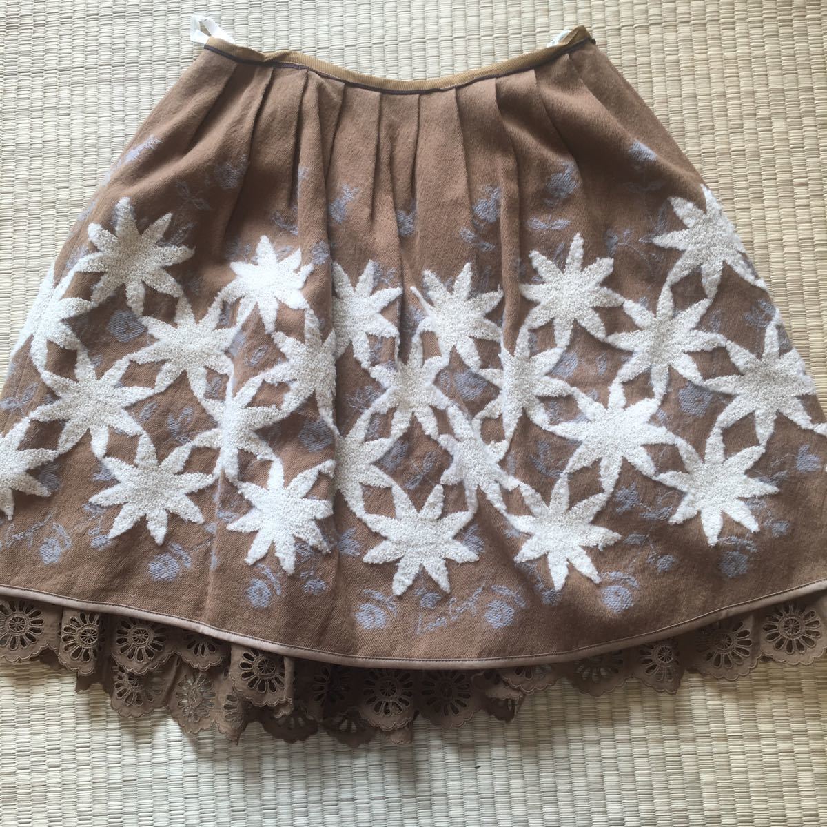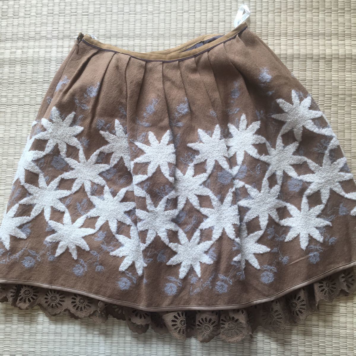 y 状態良好 ロイスクレヨン 刺繍の美しい ウールスカート レーススカート フレアスカート レース 茶色 花の刺繍 サイズM レディース