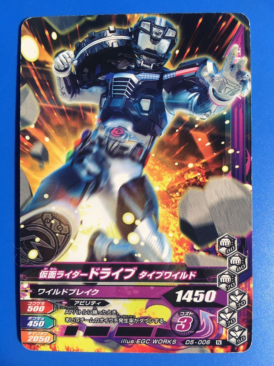 仮面ライダー、ガンバライジングの第D5弾から、No.006《仮面ライダードライブ・タイプワイルド》の登場です。発送は、普通郵便を利用します。(特にご希望のない場合)おとりまとめも可能ですが、送料に変動する場合がございます。また、送料のご請求は、自宅での計量を基準にご請求させていただいておりますので、実際の金額と差異が出る場合もございます。予めご了承ください。他にも多数出品中です。まとめてこの機会にいかがでしょうか?ご質問お待ちしております。