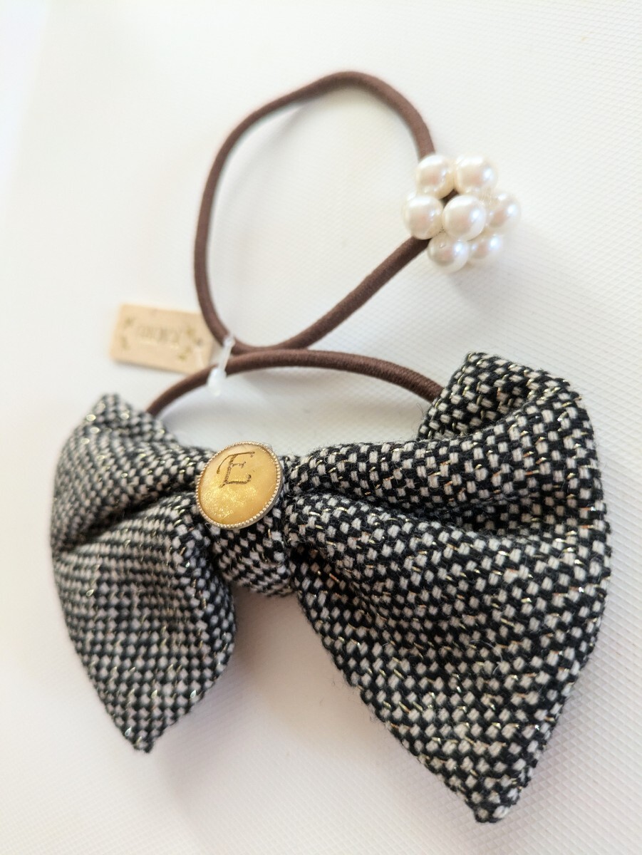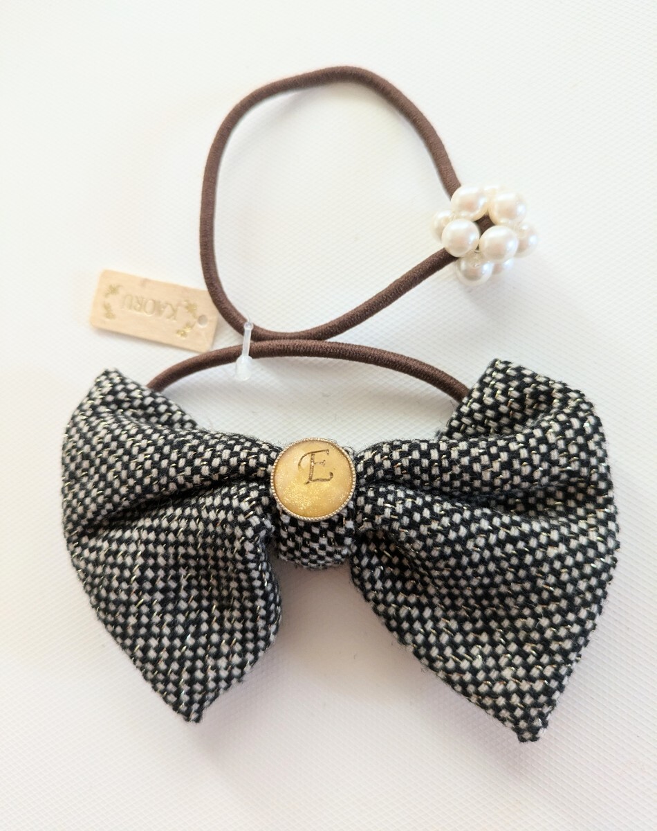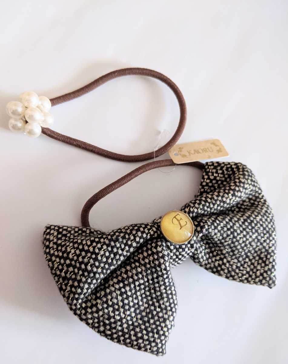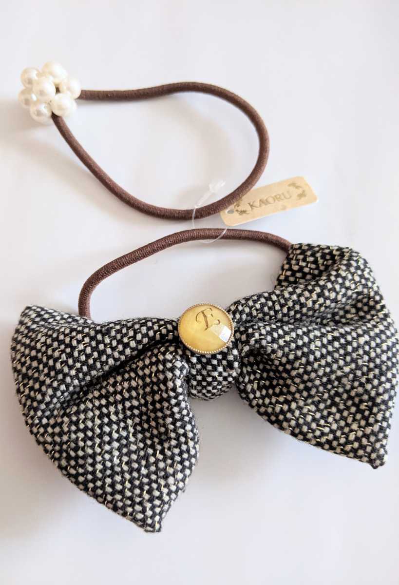こちらは、リボンのものと、白いビーズがついてるものと2個セットになっているヘアゴムになります♪