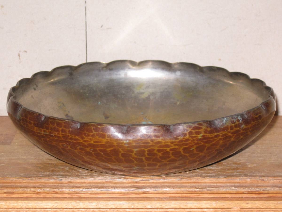 唐金 槌目 菓子鉢 幅19.2cm 重量約480g 使用感あり 茶道具