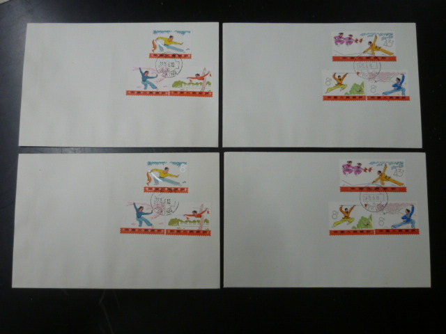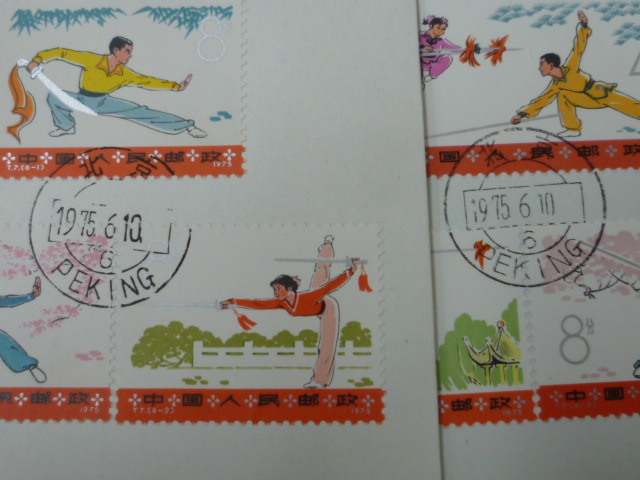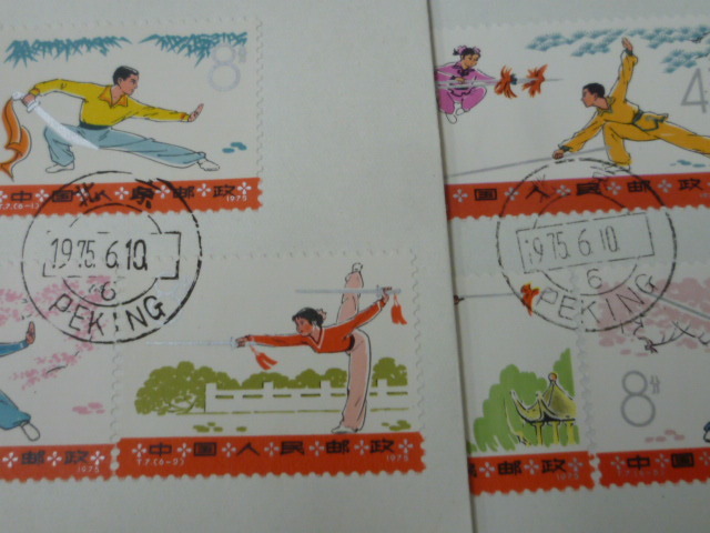 21EA S 新中国切手 FDC 1975年 T7G 武術 6種完 2組 計4通 VF
