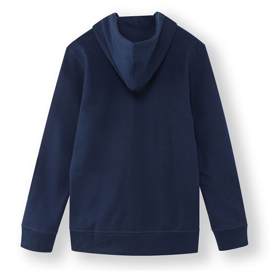 スリムフィットのデザインとソフトなフレンチテリーを採用。フードは調節可能。