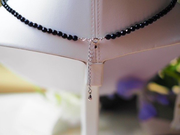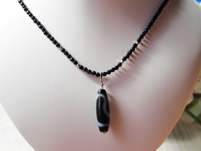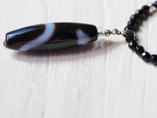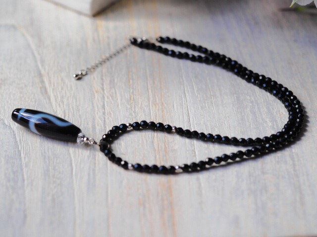 ツルンとしたやや大きめのオニキストップ(ブラック、ホワイトの2色)に、4mmサイズのオニキスネックレスを合わせました。