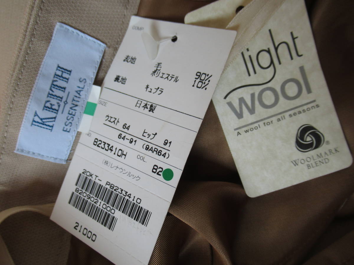 新品タグ付 キース KEITH(ルック)最高級サマーウールのパンツ 64(9号M相当) ベージュ 定価2.1万円