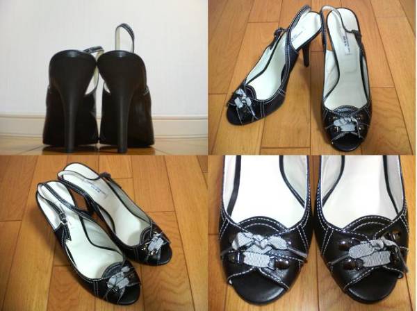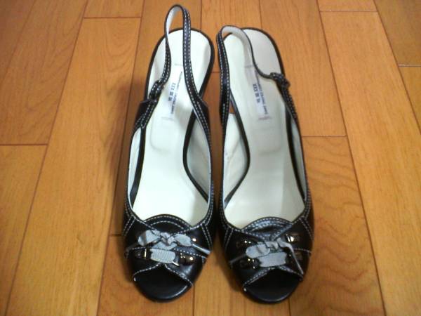 即決 セブントゥエルブサーティ サンダル 黒 23.5cm バックストラップオープントゥパンプス