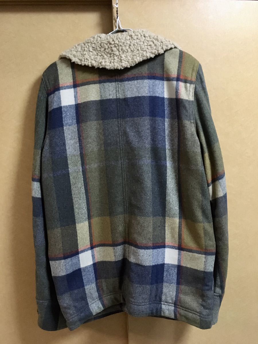 美品 マニア コレクター向け 正規店購入 HOLLISTER ホリスター ロゴ刺繍 裏ボア ハーフジャケット Sサイズ グリーン・青チェック系