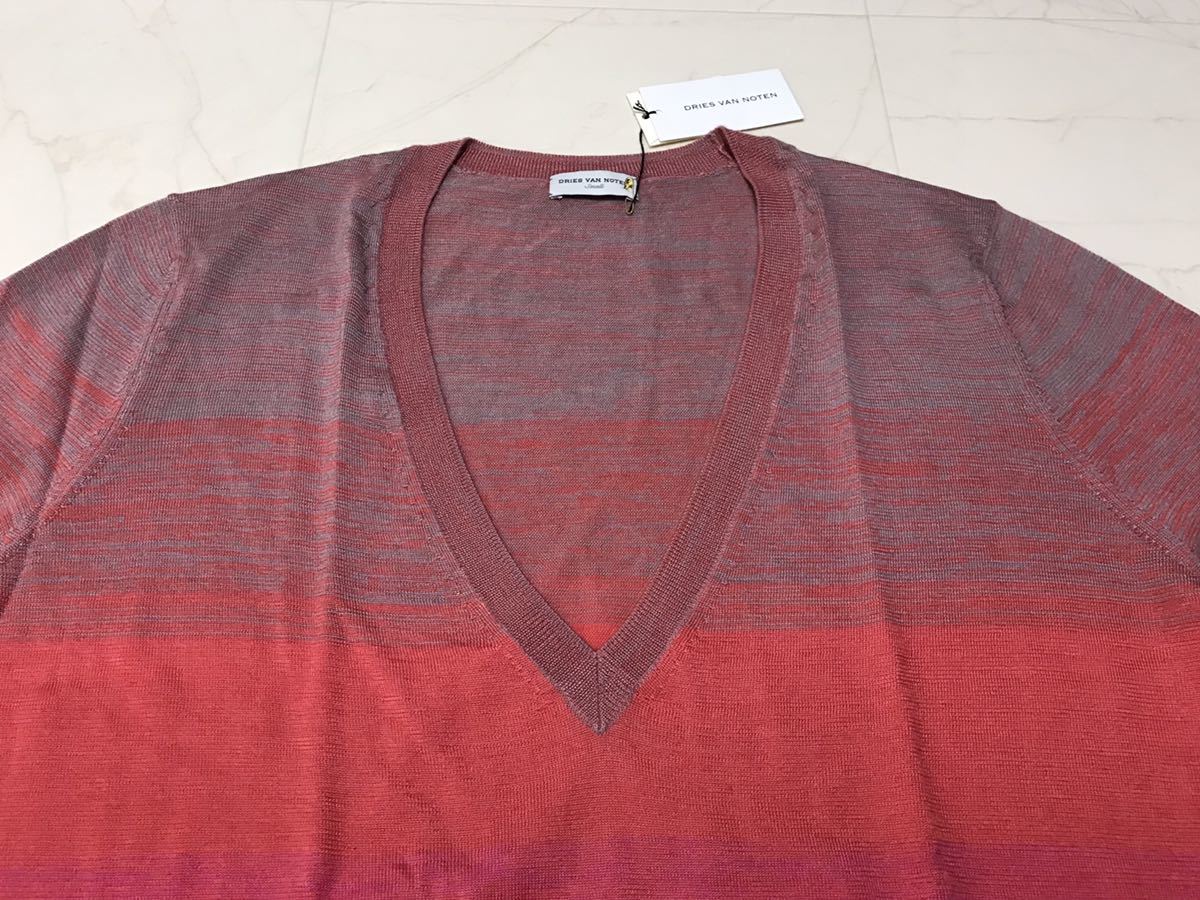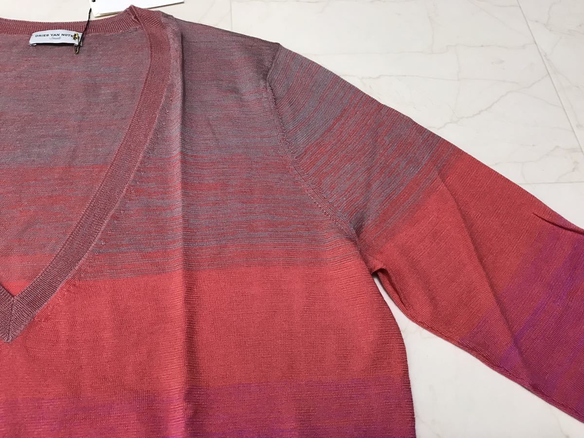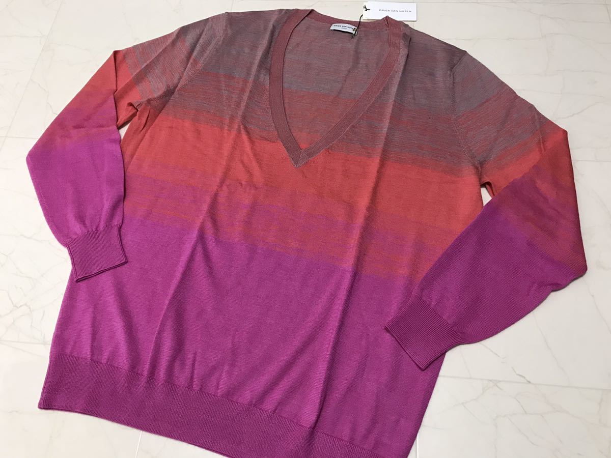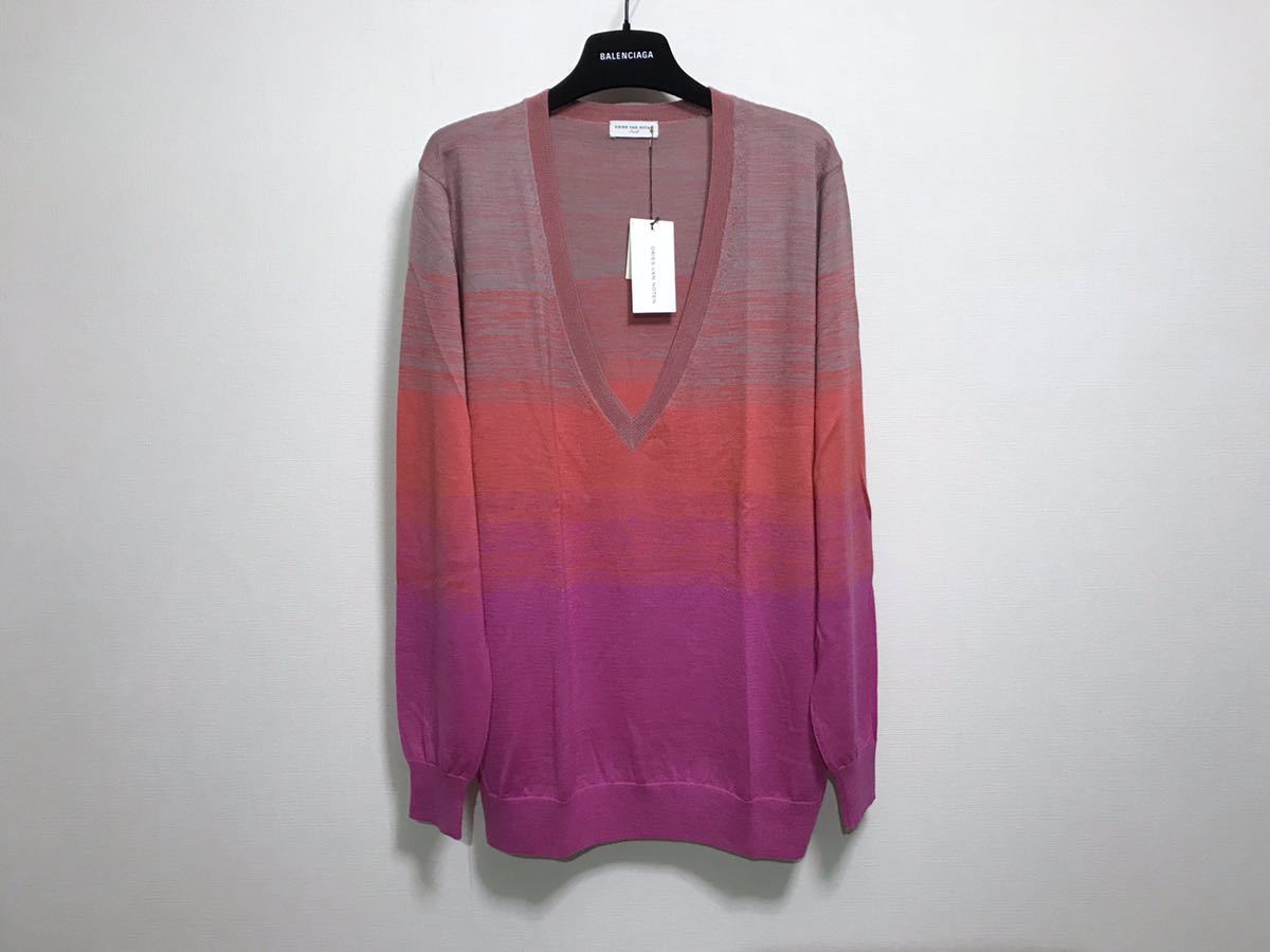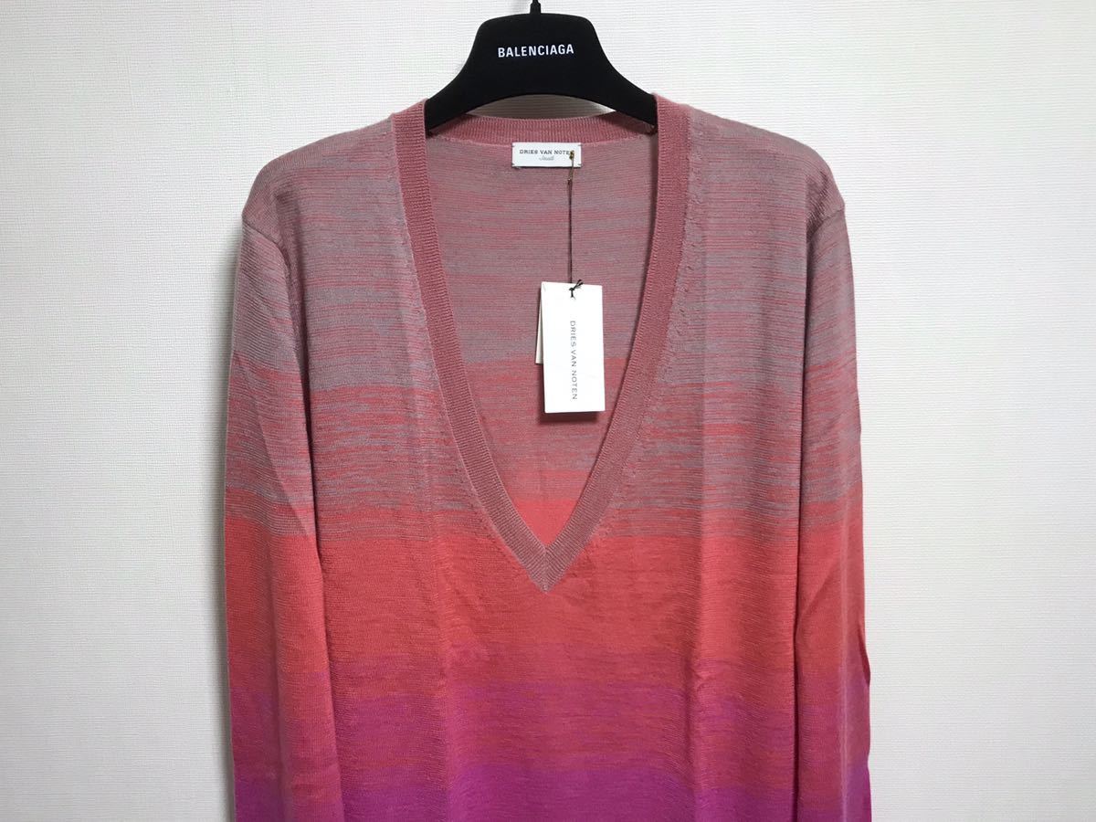 DRIES VAN NOTEN ドリスヴァンノッテン カシミア Vネックニット グラデーション ピンク オレンジ カシミヤ S シルク
