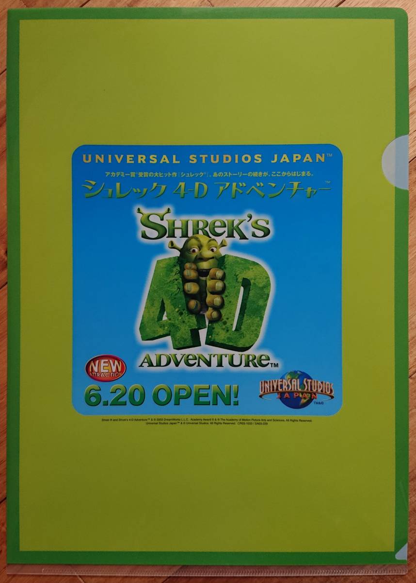 ◆USJで2003年6月20日にオープンを控えた『シュレック4Dアドベンチャー』非売品クリアファイルの未使用品になります。