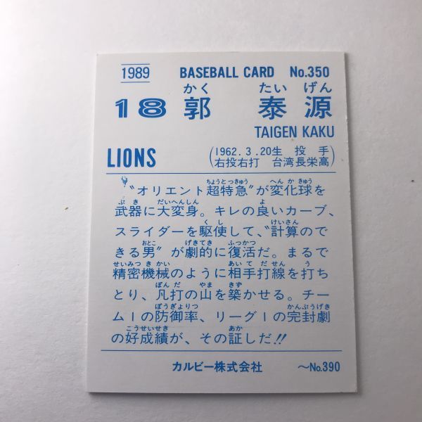 1989年 カルビー プロ野球カード 350番 西武 郭 89年 レアブロック   【管理NO:202-07】