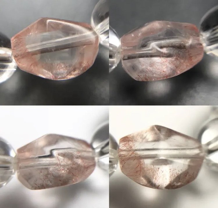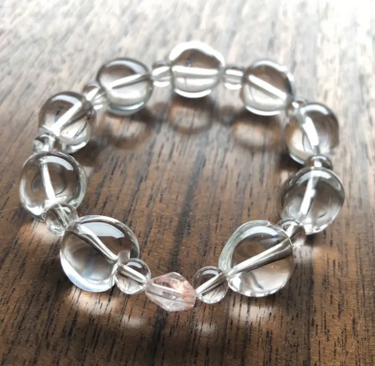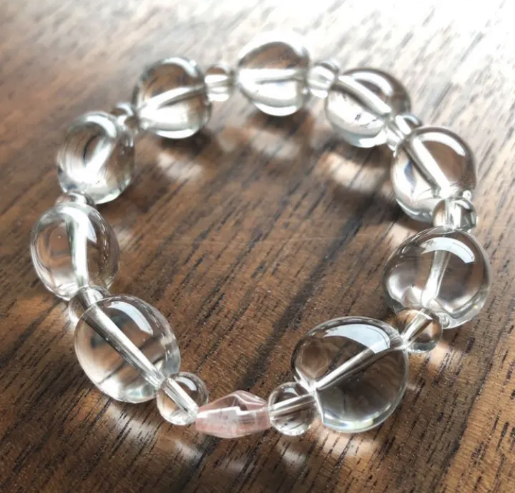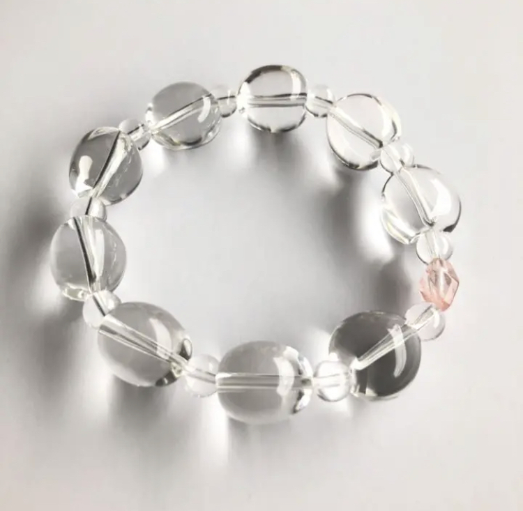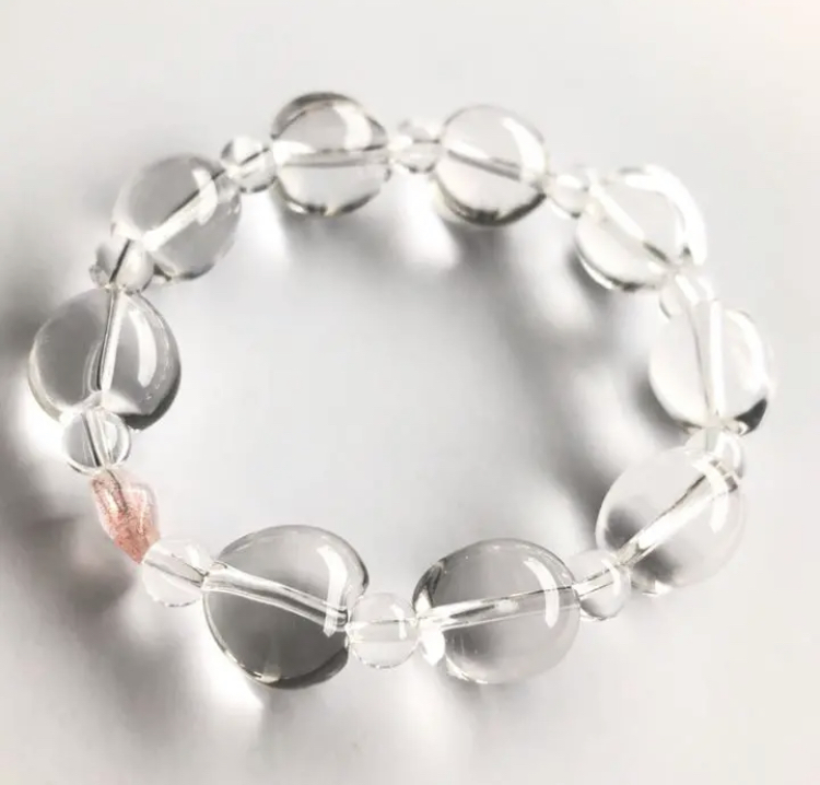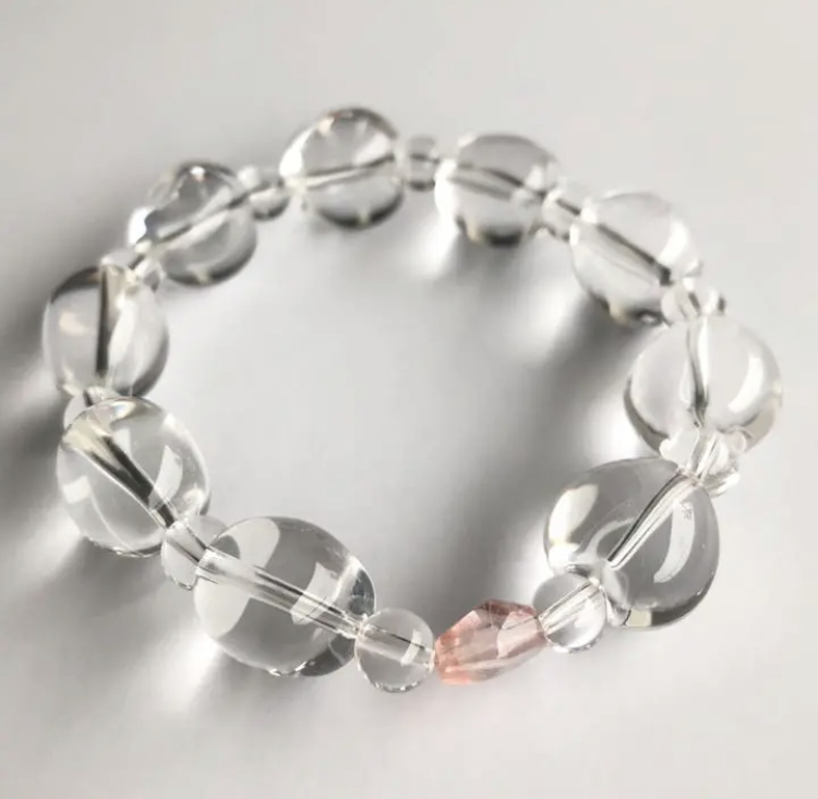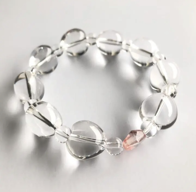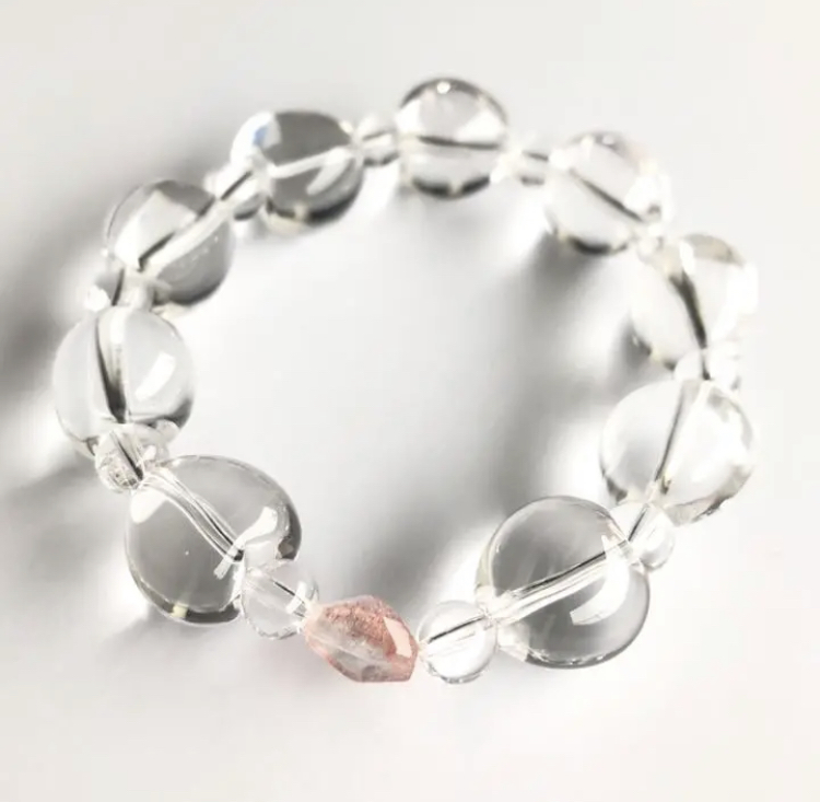希少なカザフスタン産ストロベリークォーツとブラジル産の高品質天然水晶のデザインブレスレットです。
