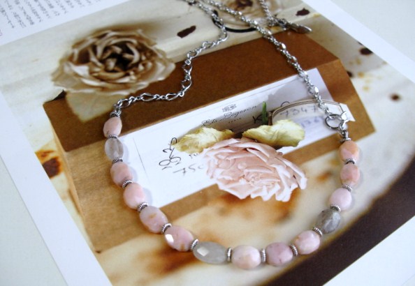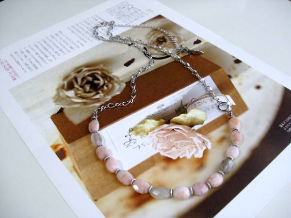 愛らしさのスパイス・・シリーズです♪やさしいピンク・・シックなナチュラルピンクのオパールとルチルクォーツのネックレスです♪オーバルカットのオパールとルチルクォーツにシックな座金やジルコニアリングを合わせてアンティークな表情です♪オパールとクォーツはどちらも12×10ミリ位のオーバルカットです♪長さは全長68センチ位で調節自由です♪チョーカー風にされても素敵です♪お揃いのブレスレットも出品しています♪シンプルで長く着けていただけるデザインを考えて作りました!ハンドメイドをご理解頂いてノークレーム、ノーリターンでお願いします