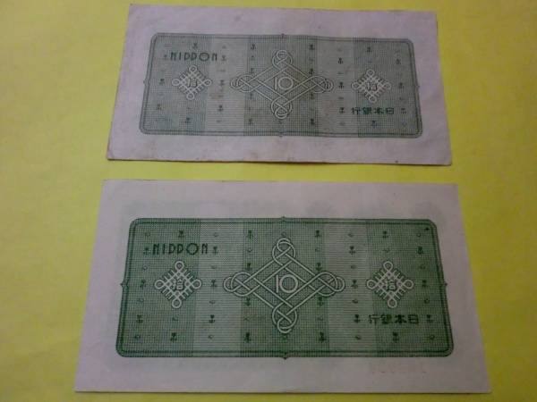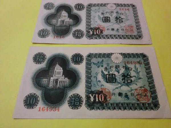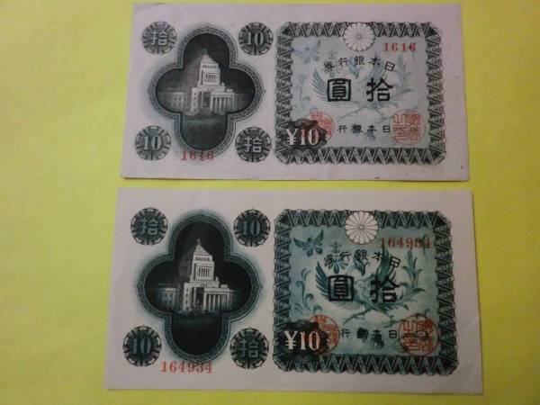 日本銀行券A号10円 議事堂10円で王子(組み番号1桁)・新発田工場の美品を2枚です。