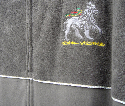 胸には、Jah Lion刺繍に色違いでOne Worldロゴ。(イエロー)