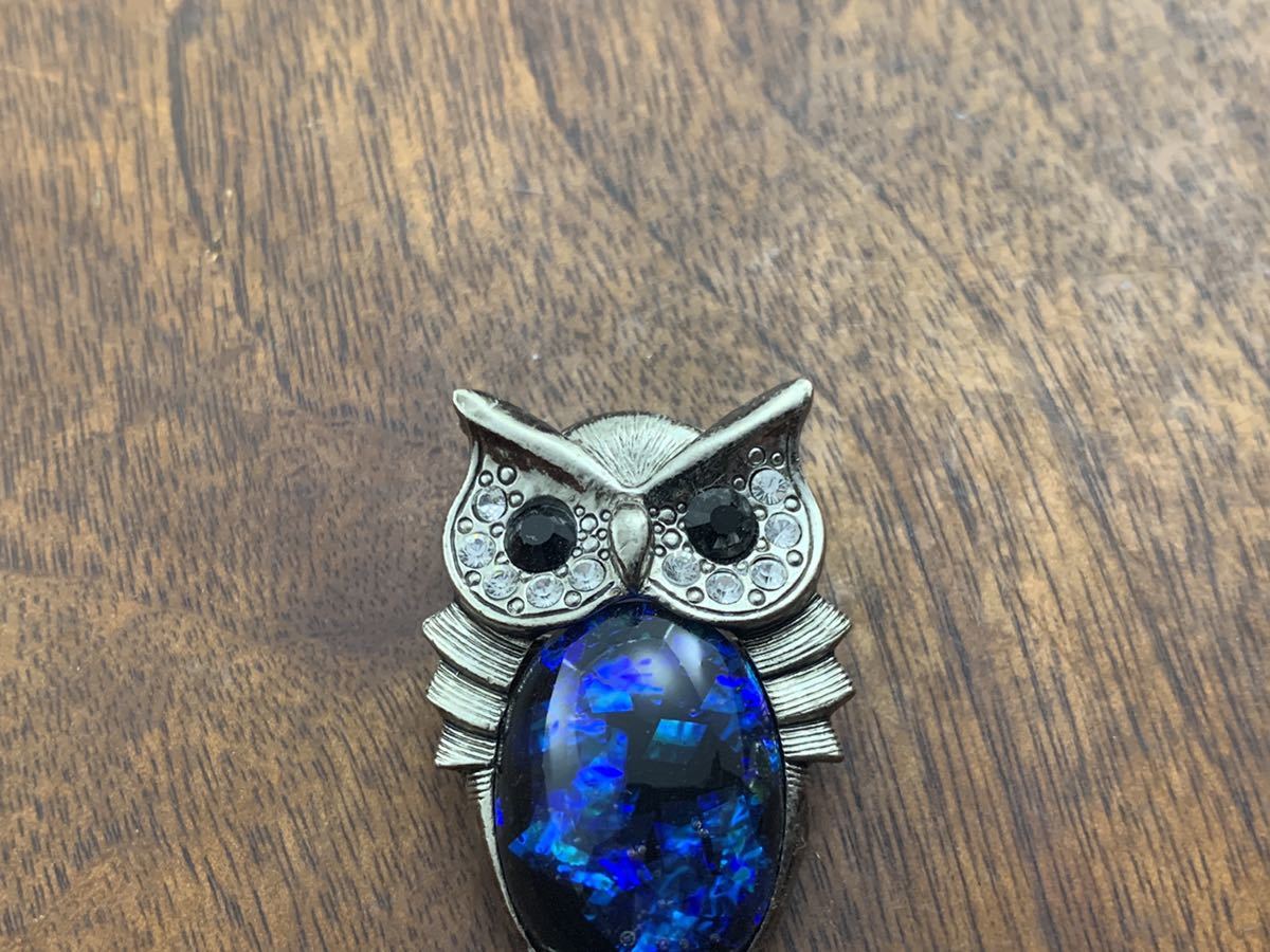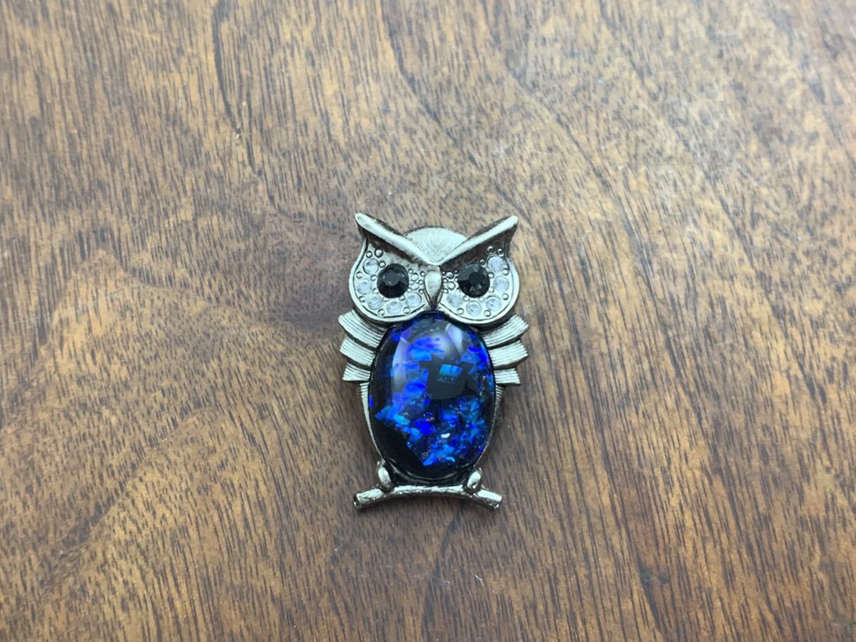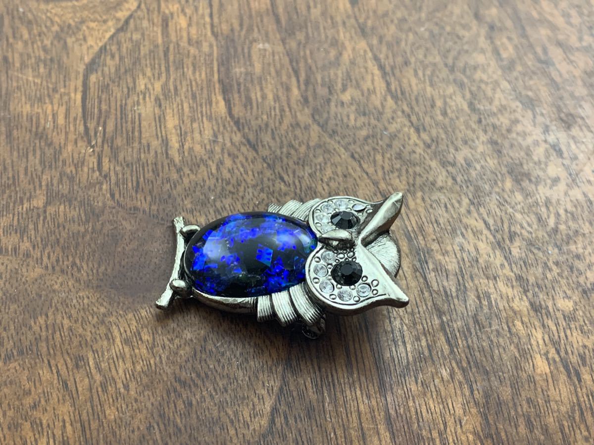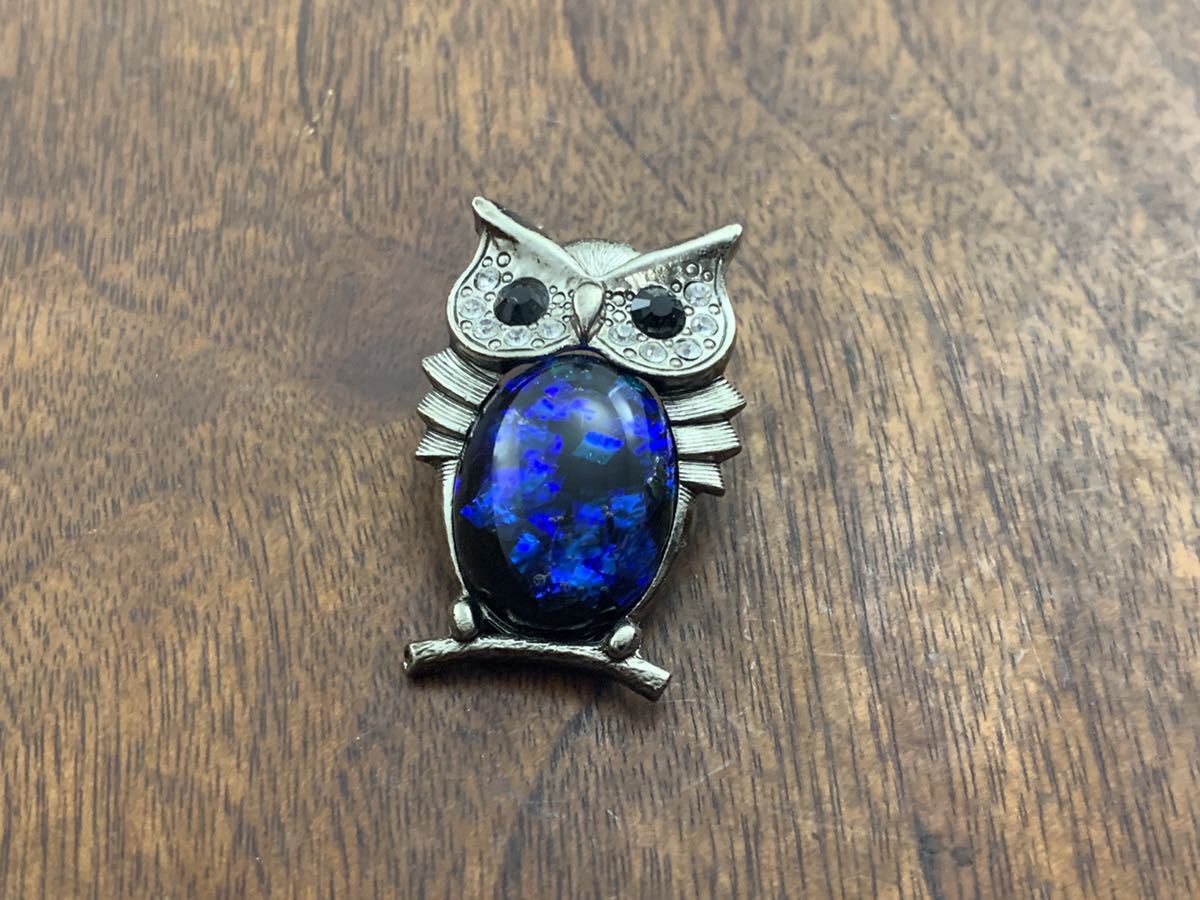 【送料無料】レトロ フクロウ フェイクストーン ヴィンテージ ブローチ シルバー調 中古