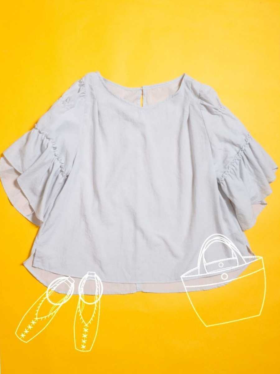 定価一万円弱 新品 Te chichi テチチ 袖フリル シフォンブラウス F グレー フレア 五分袖シャツ 大人カジュアル ナチュラル 春夏 薄手 カットソー トップス ブランド