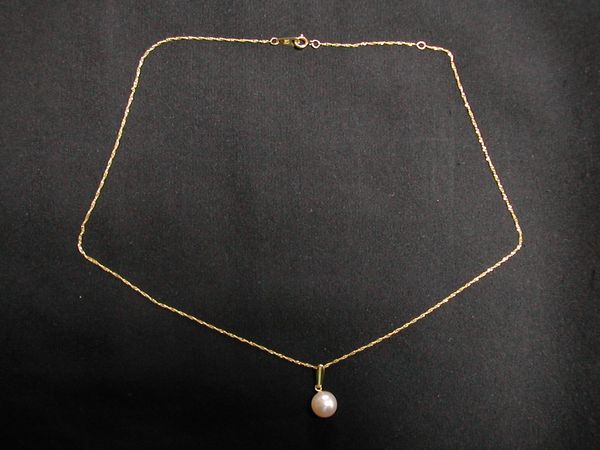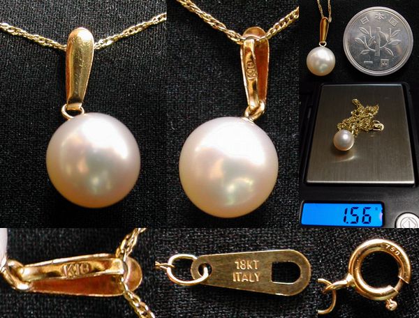 ■美品:イタリア製K18ネックレス 1粒真珠のトップ付 Dn145