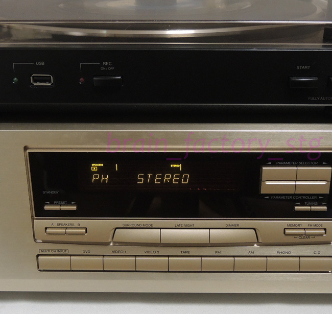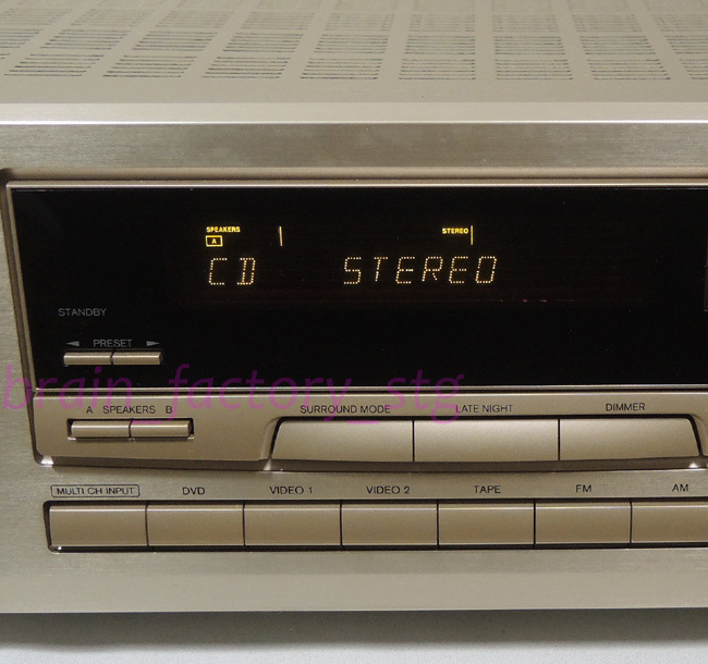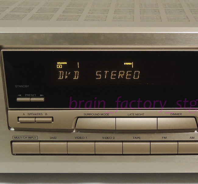 | 動作確認 | ・DVD、VIDEO1、VIDEO2の音声のみ入力、出力(A、B)確認済み。 ・ラジオAM、FM受信確認済み。 ・PHONO、CD入力、出力(A、B)確認済み。 ・取扱説明書が無いので、上記以外の動作確認や設定や調節など行っておりません。 |