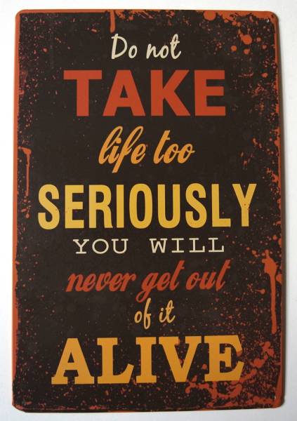 【ブリキ看板】Do not take life too seriously. You will never get out of it alive.★エルバート・ハバード★名言/B-203