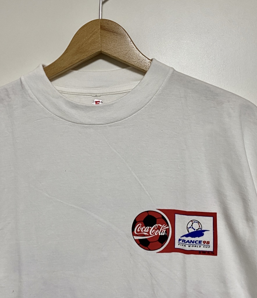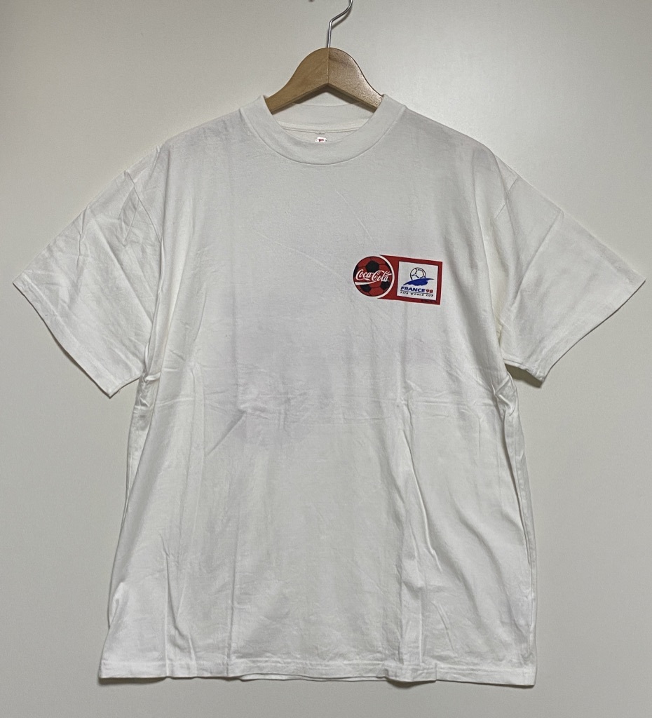 ○商品:希少 未使用 90's ビンテージ☆Cola Cola コカコーラ フランスワールドカップ 半袖Tシャツ 約サイズL-XL 白 サッカー 1998年です。