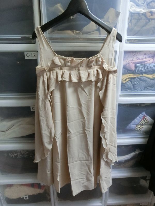 FOXEY NEW YORK ノースリーブ フリル ワンピース 38 ベージュ #28892-NA0FF303L フォクシー