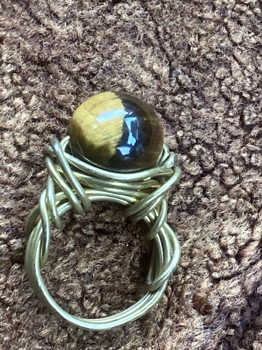 天然石 タイガーアイワイヤーリング