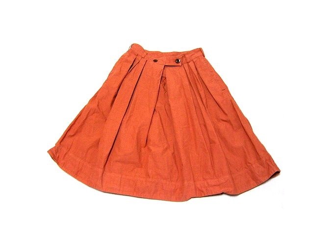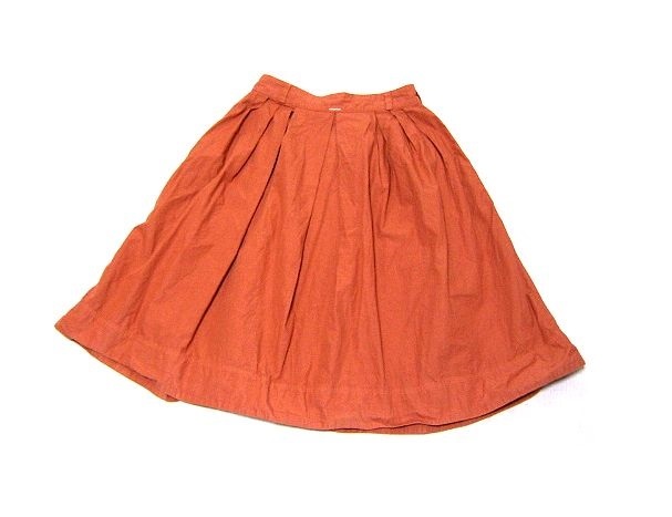 MHL マーガレットハウエル コットン・リネンの立体タックフレアスカート テラコッタ系!