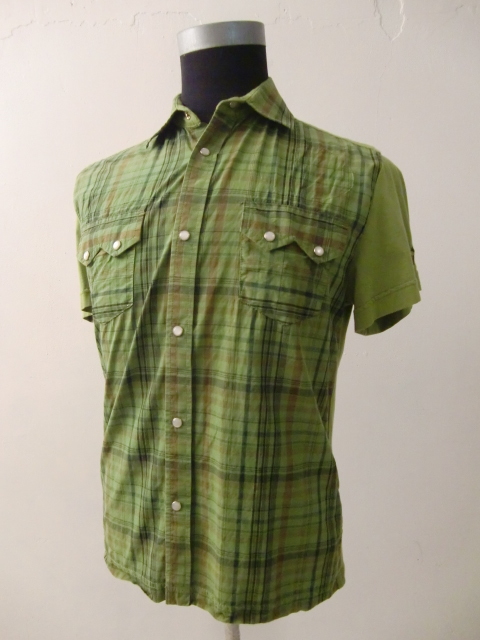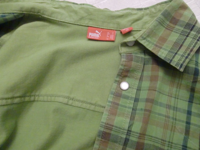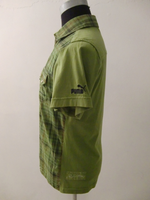 送料無料 PUMA×RICHARD PETTY ウエスタン シャツ 半袖 カットソー 切替 ワークシャツ チェックシャツ Sサイズ プーマ×リチャード・ペティ