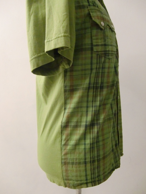 シャツ生地とカットソー生地の切替デザインで可愛いです。