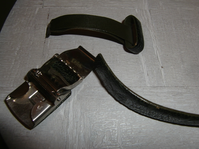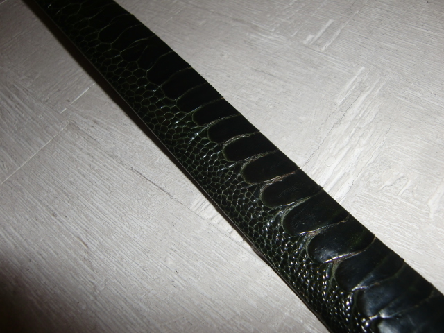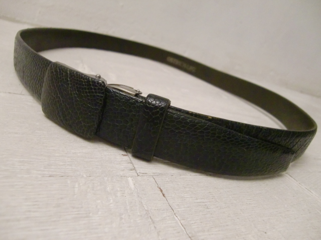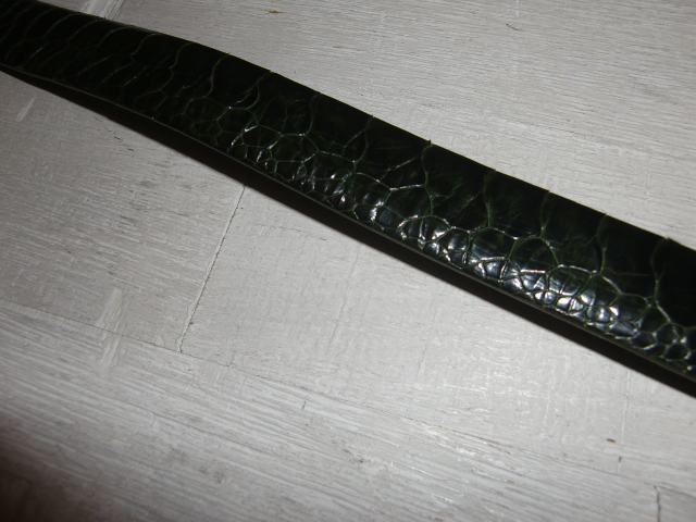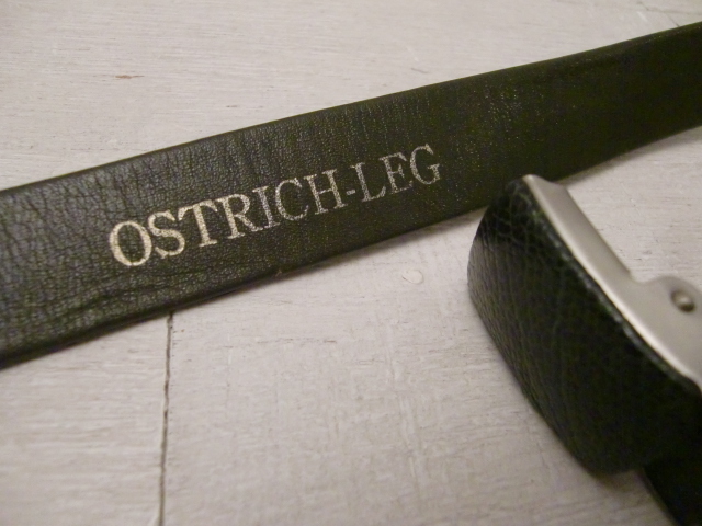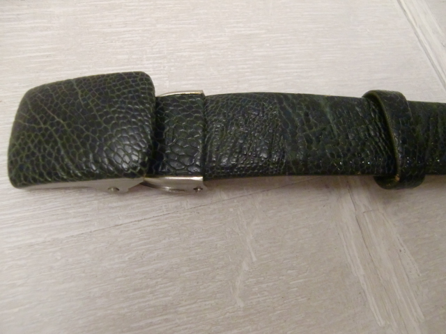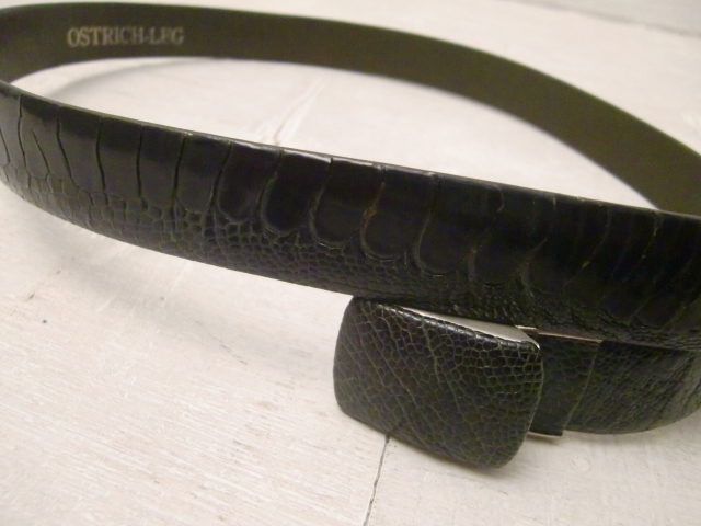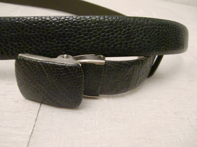 送料無料 オーストリッチ グリーン レザーベルト ダチョウ 駝鳥 エキゾチック 革 皮 爬虫類 ハサミで切れて調整OK 男女兼用 現状全長104cm