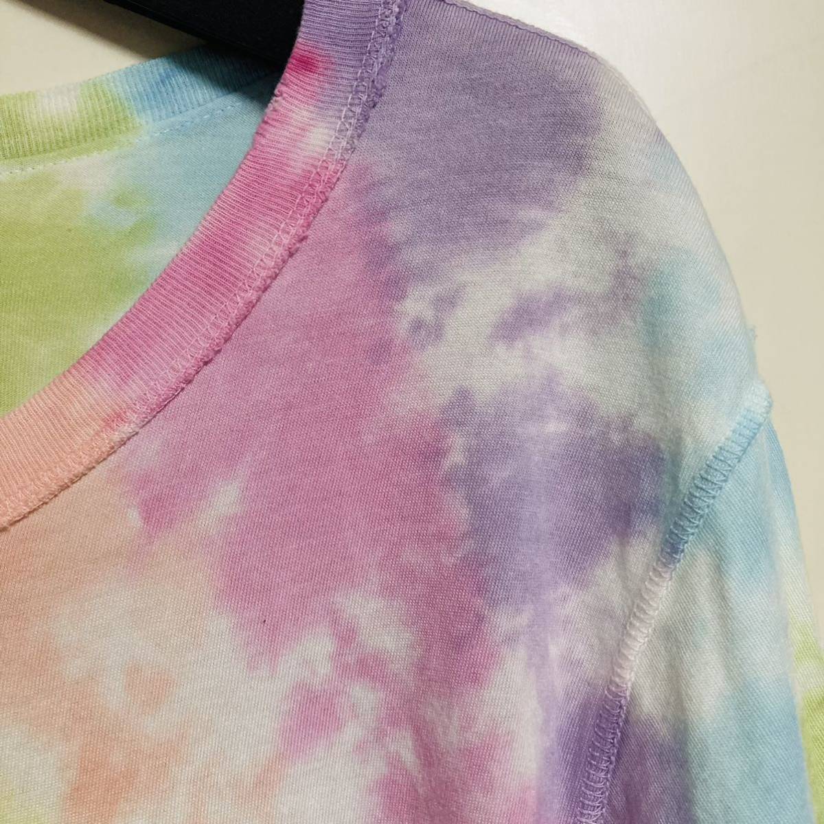 インパクト大のタイダイTです。縫部が外側になっていたり襟ぐりにクラッシュのビンテージ加工がされたり、小技きいています。