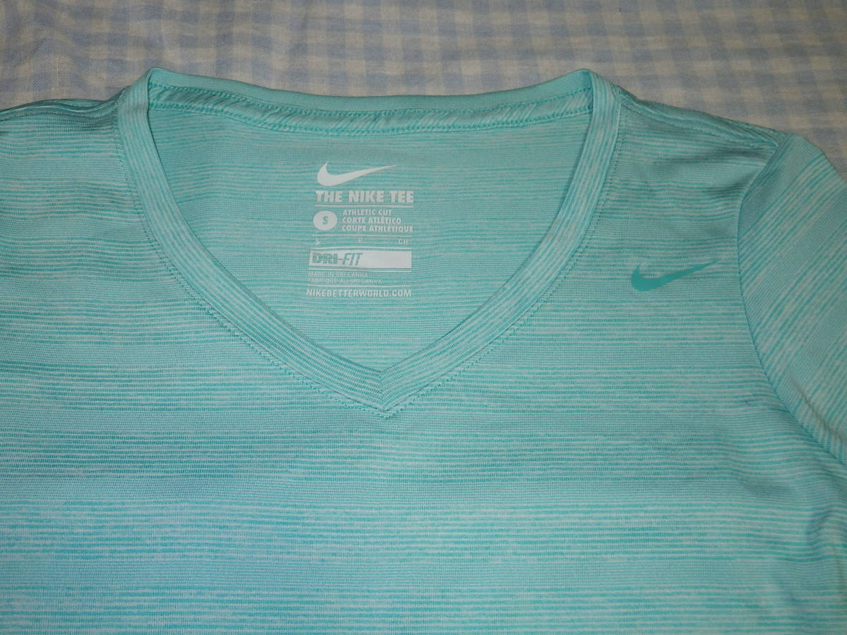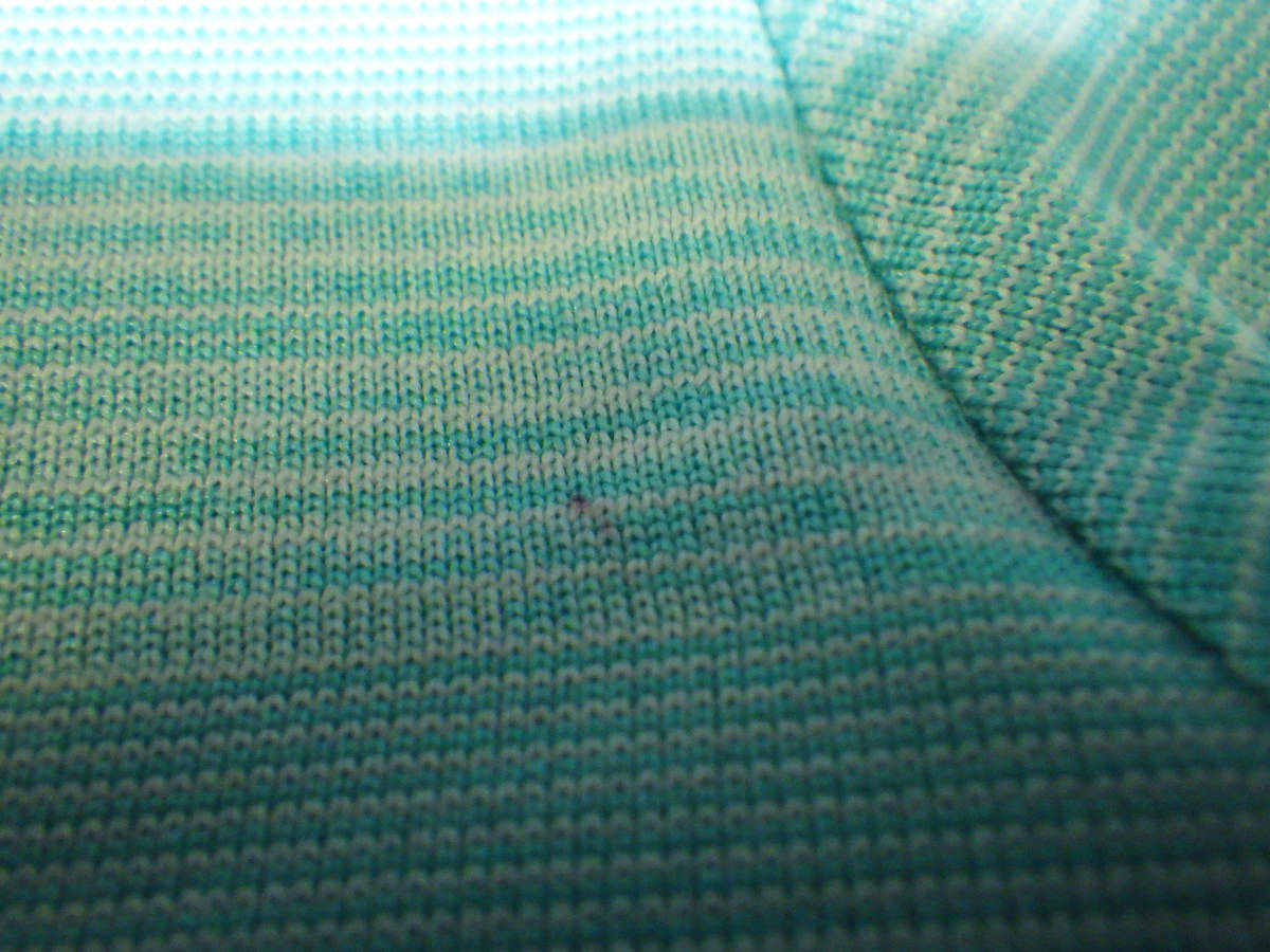 色は薄パステルグリーンの細かなボーダー わずかに1点汚れがあります。画像をご覧ください。 素材:ポリエステル100% サイズS(150-160cm/80A) 肩幅36cm胸幅40cm袖丈左が17cm右が16.5cm着丈59cm 他にも洋服、バッグ、靴、小物、本を出品していますので見てください。