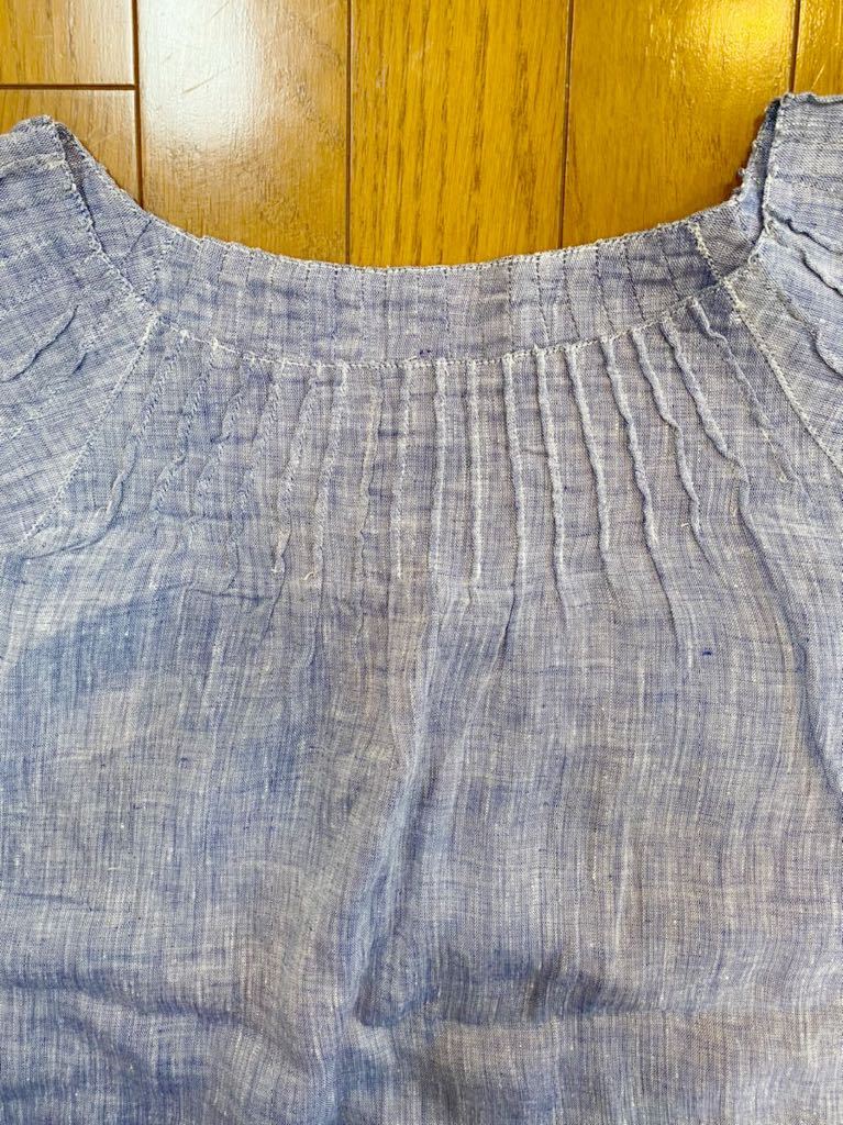 肩がやや大きく開いていることで、鎖骨を綺麗に見せたり、うなじを見せたりと女性らしさが印象的なお品です。