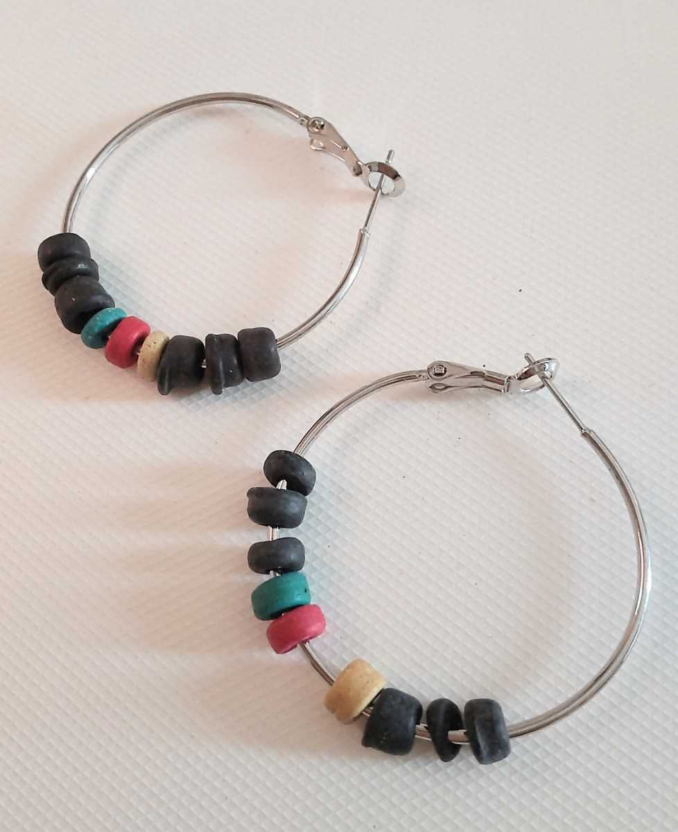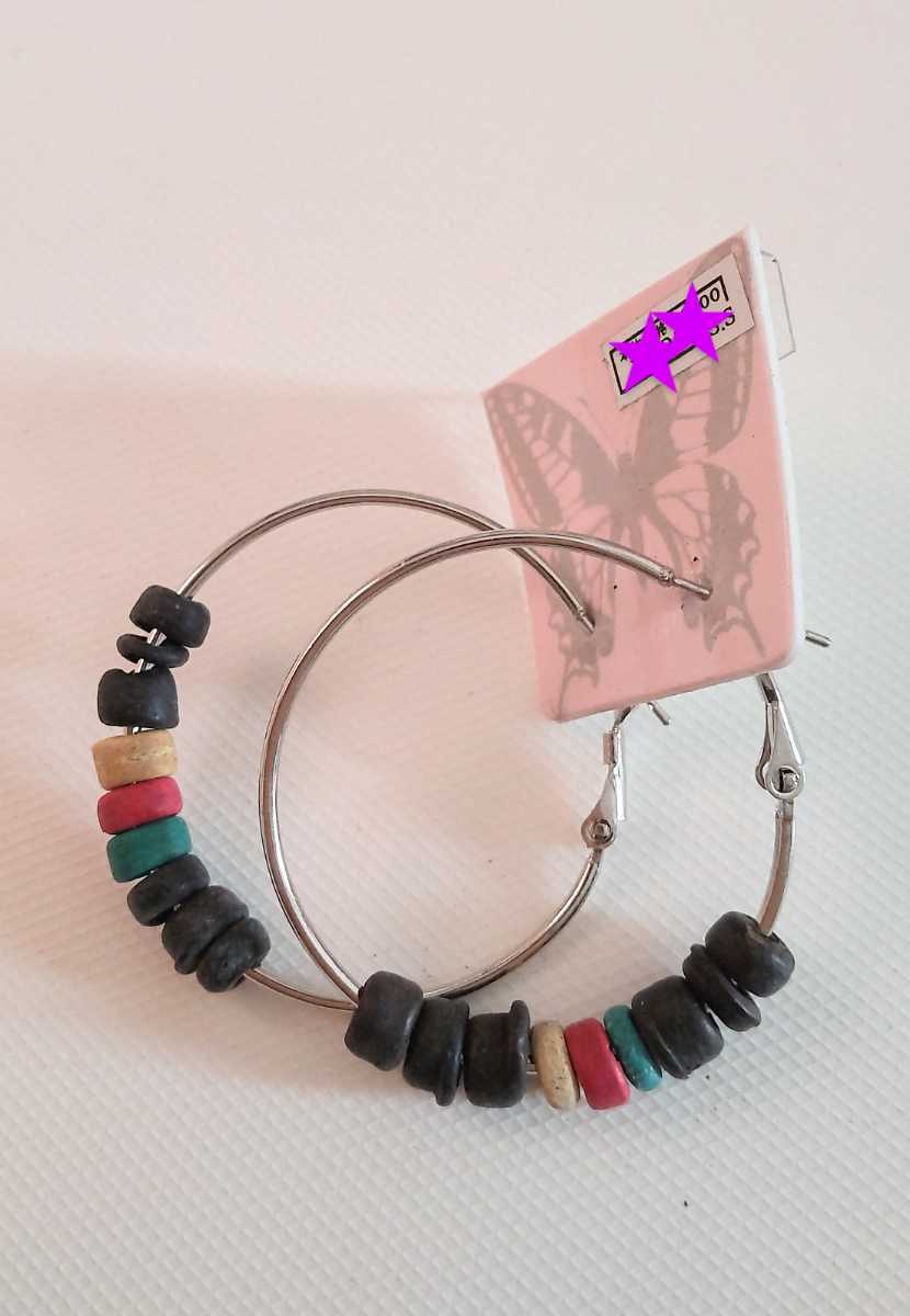 こちらは、ウッド調 カラフルビーズ ピアス になります♪