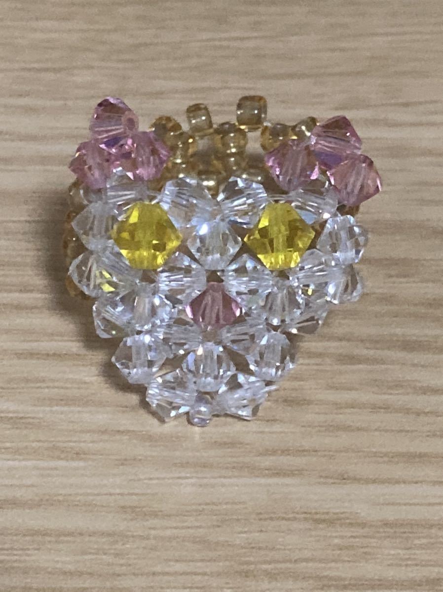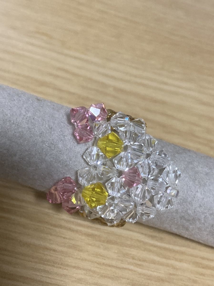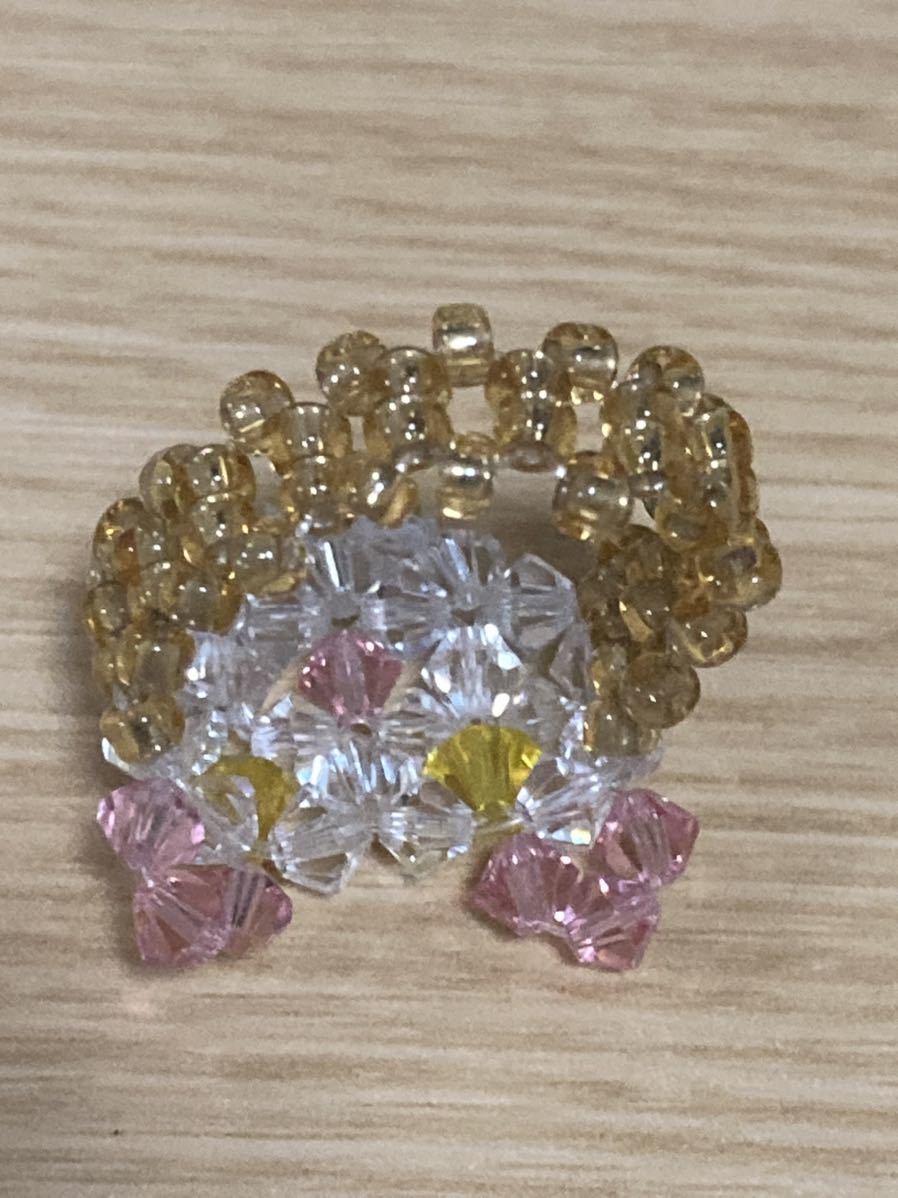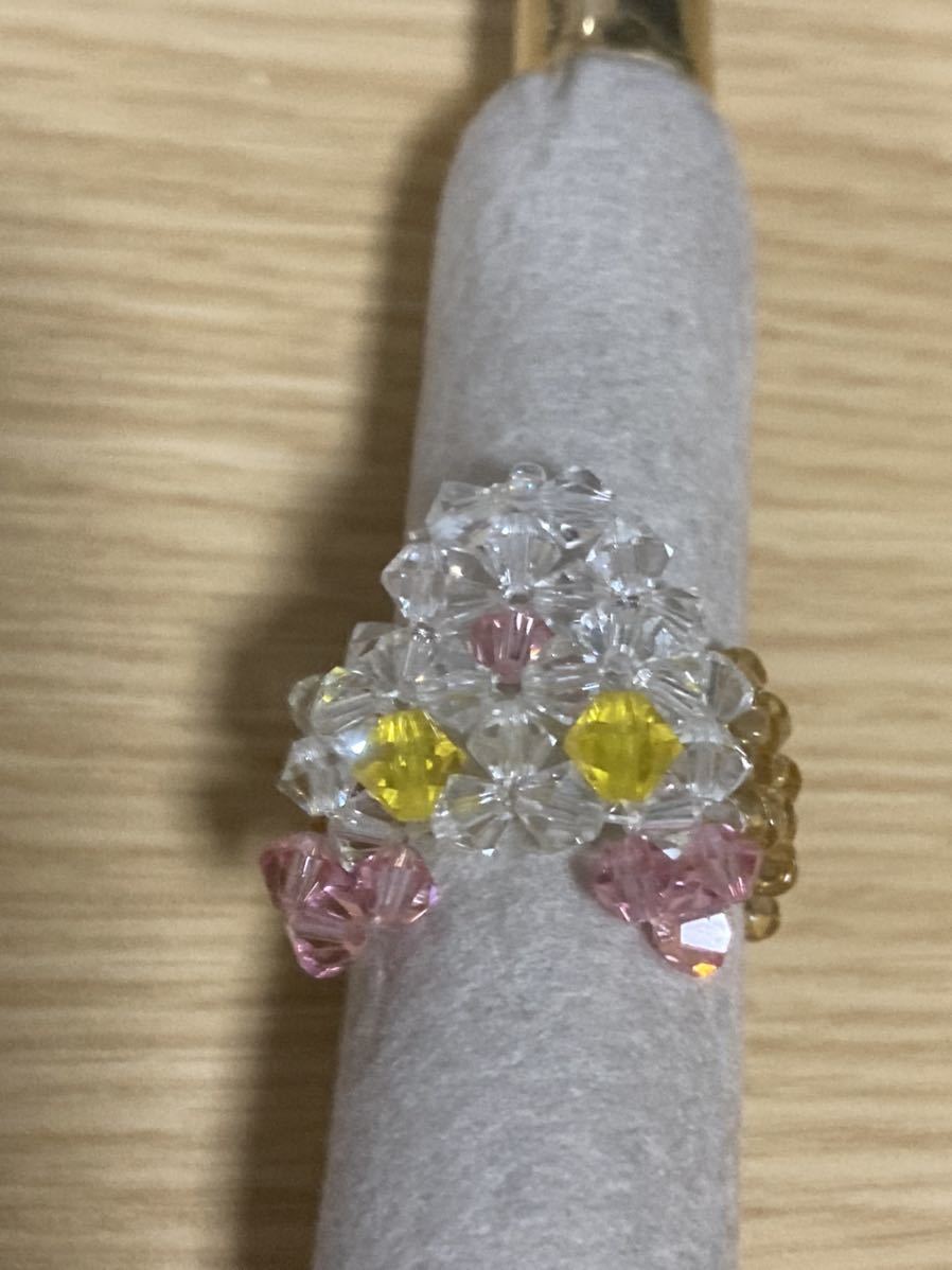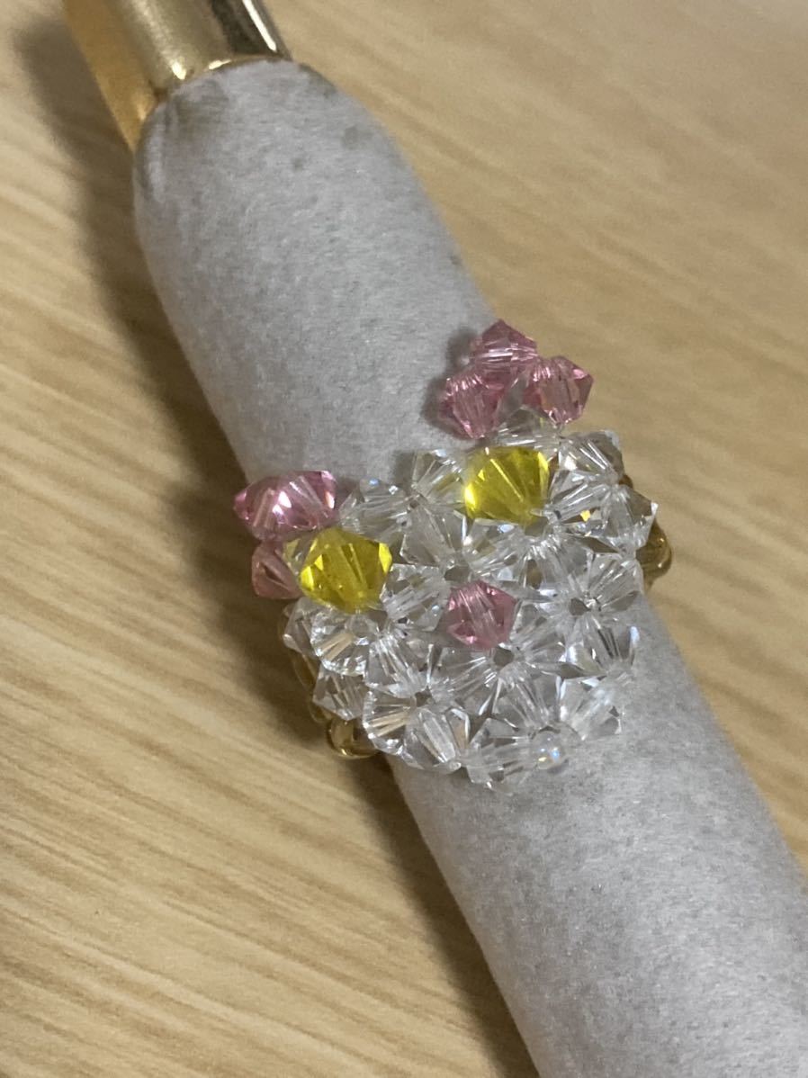天然石 ビーズリング(ハンドメイド)(猫)スワロフスキー