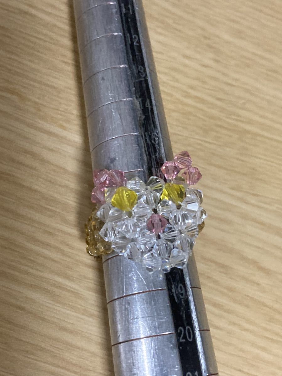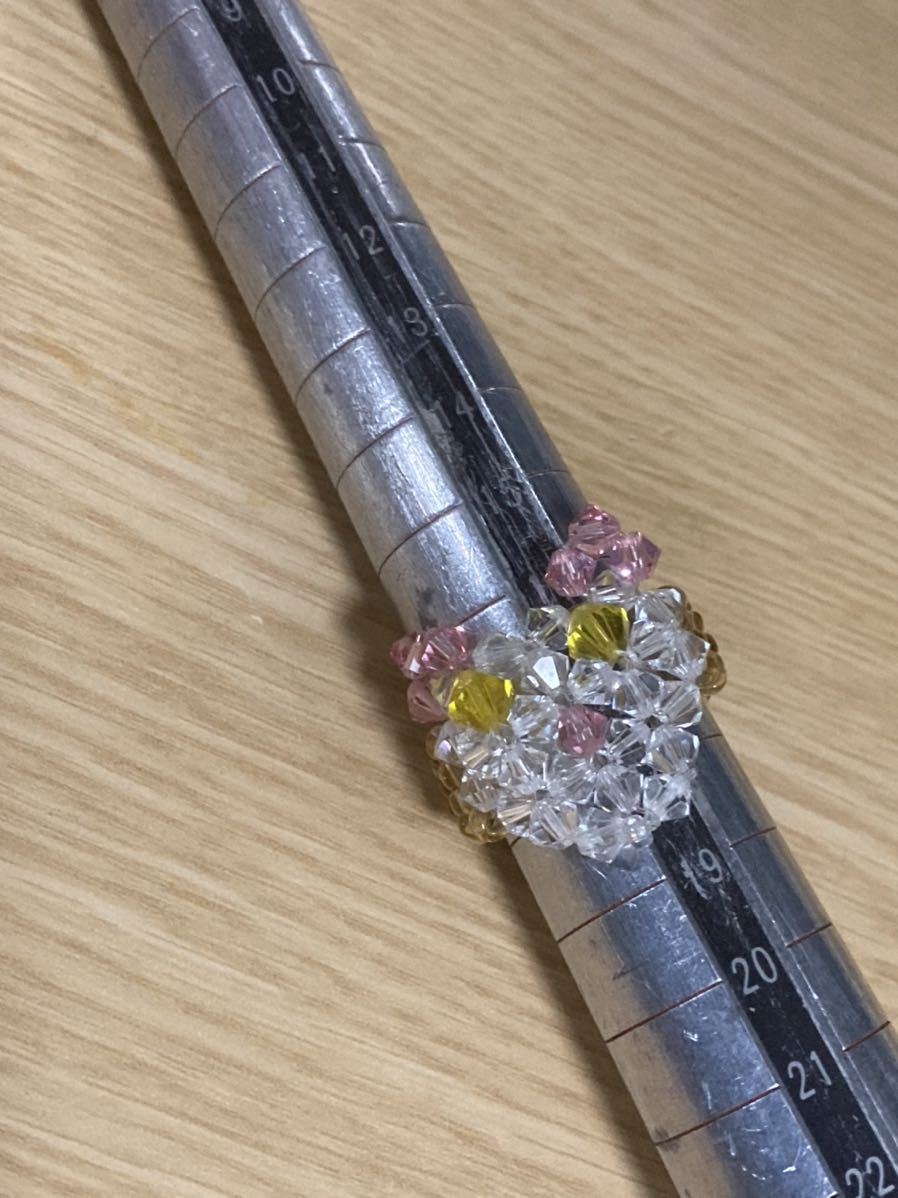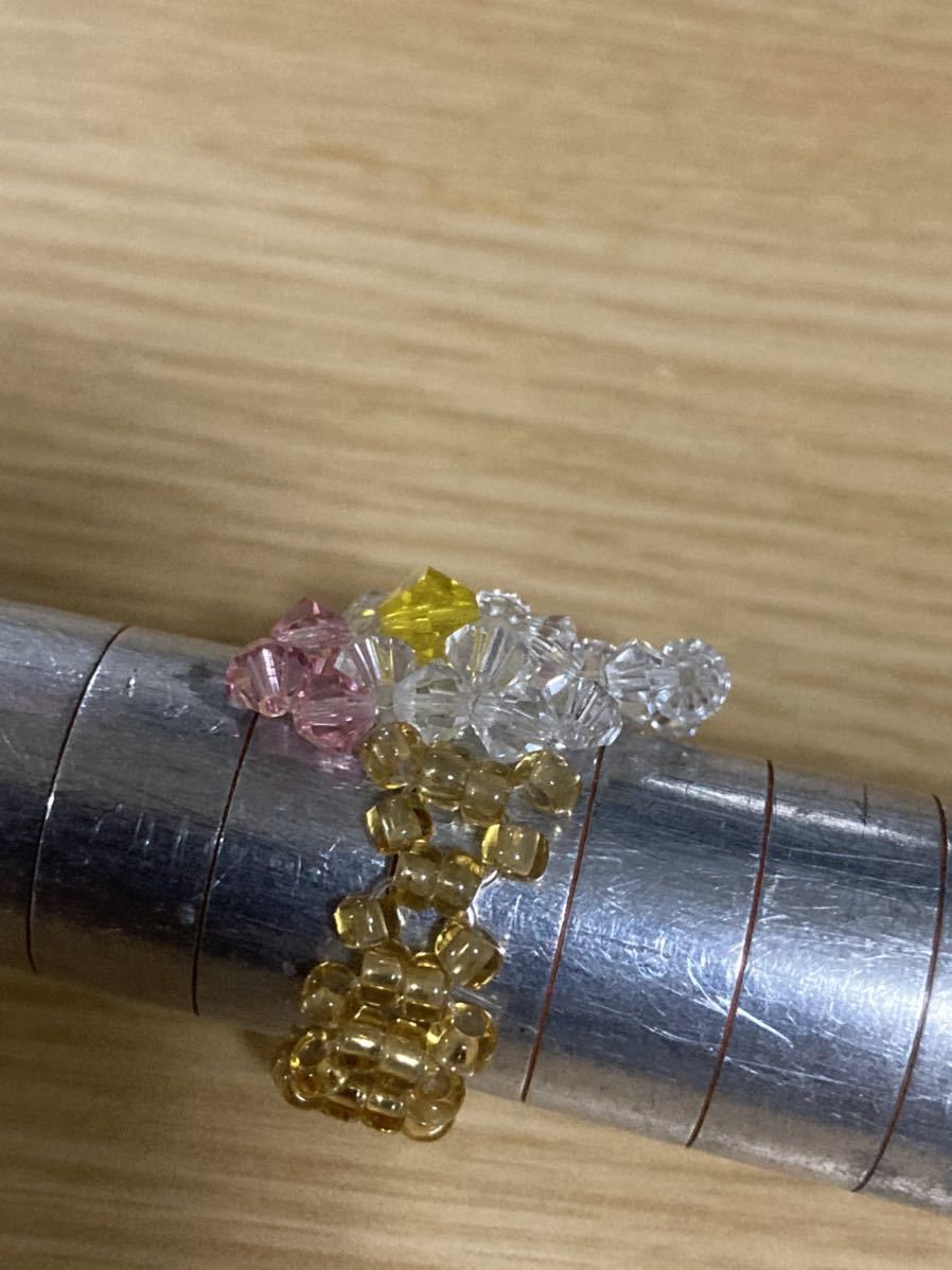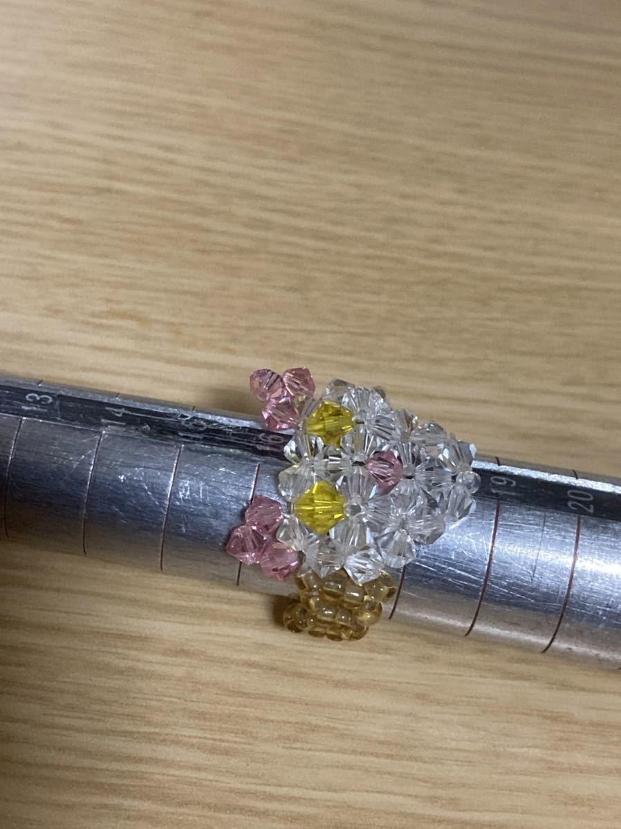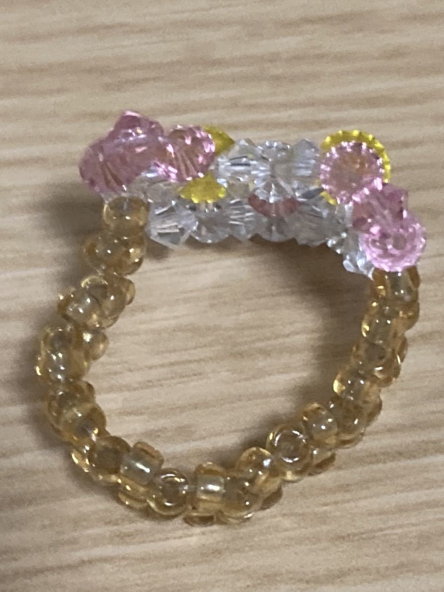天然石 ビーズリング(ハンドメイド)(猫)スワロフスキー