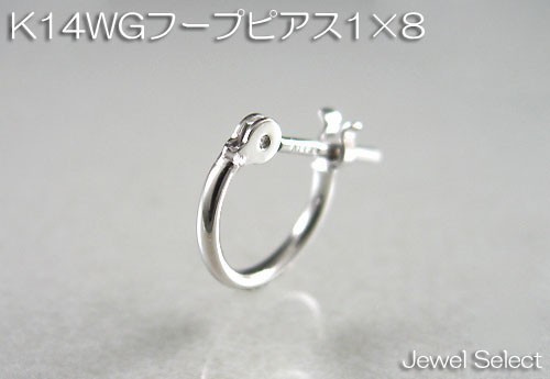 K14WG ホワイトゴールド 1×8 フープピアス 片耳用