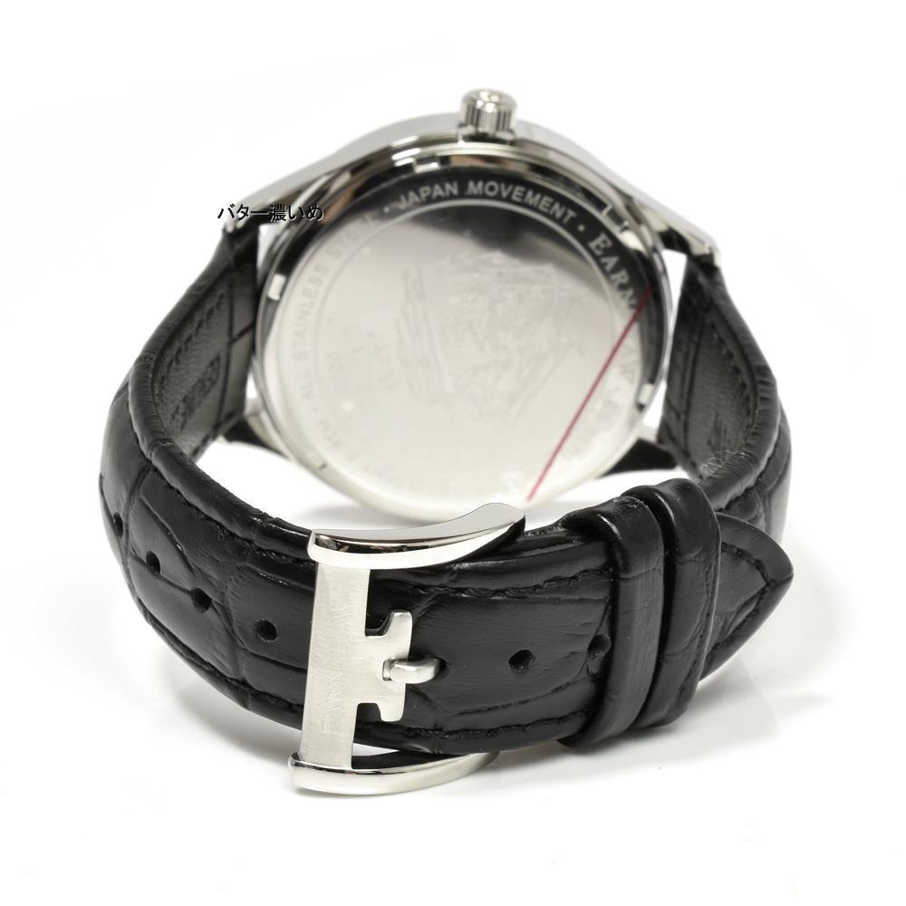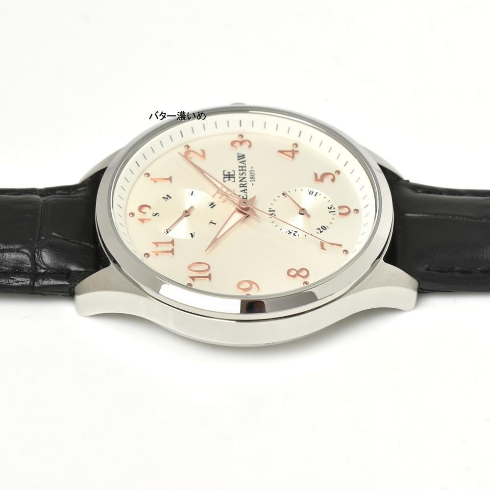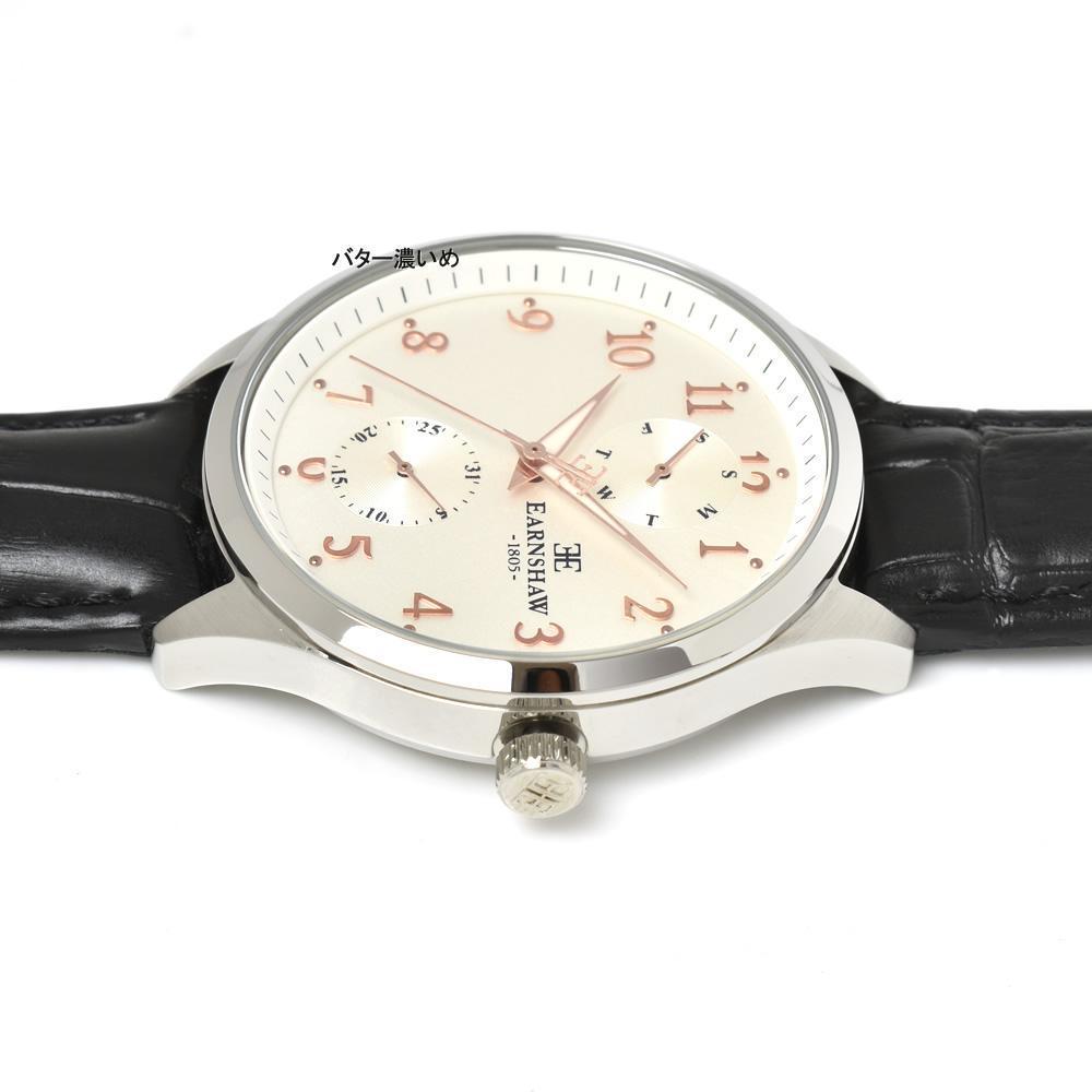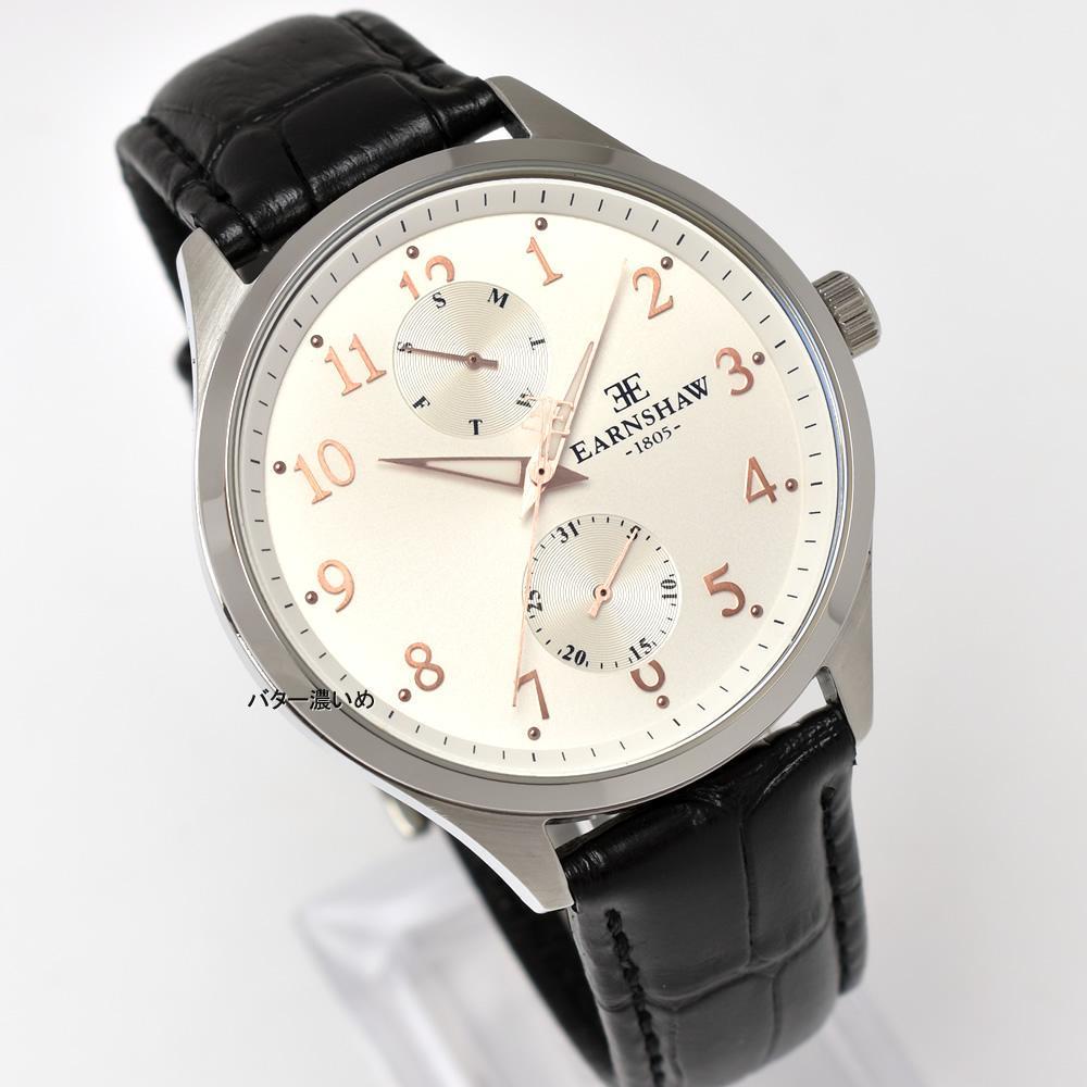 EARNSHAW 腕時計 メンズ クオーツ ブラック革ベルト レザーベルト ES-8079 クラシック ホワイトアイボリー文字盤 新品