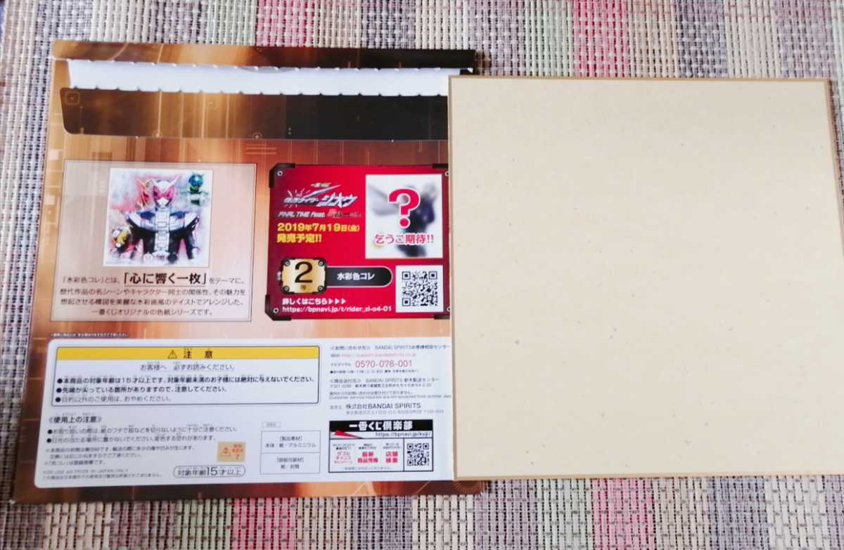 商品は画像にて全てです。一番くじ 仮面ライダージオウ FINAL TIME feat.装動「ジオウ」水彩色コレ色紙になります。現在では中々手に入らないレアな商品になります。仮面ライダーファンには是非ともおすすめです!!!!