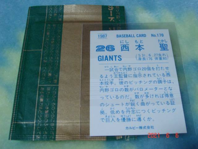*激レア 未開封・開封品・袋付き  カルビー87年 プロ野球カード NO.170 (西本/巨人) 極美品 *