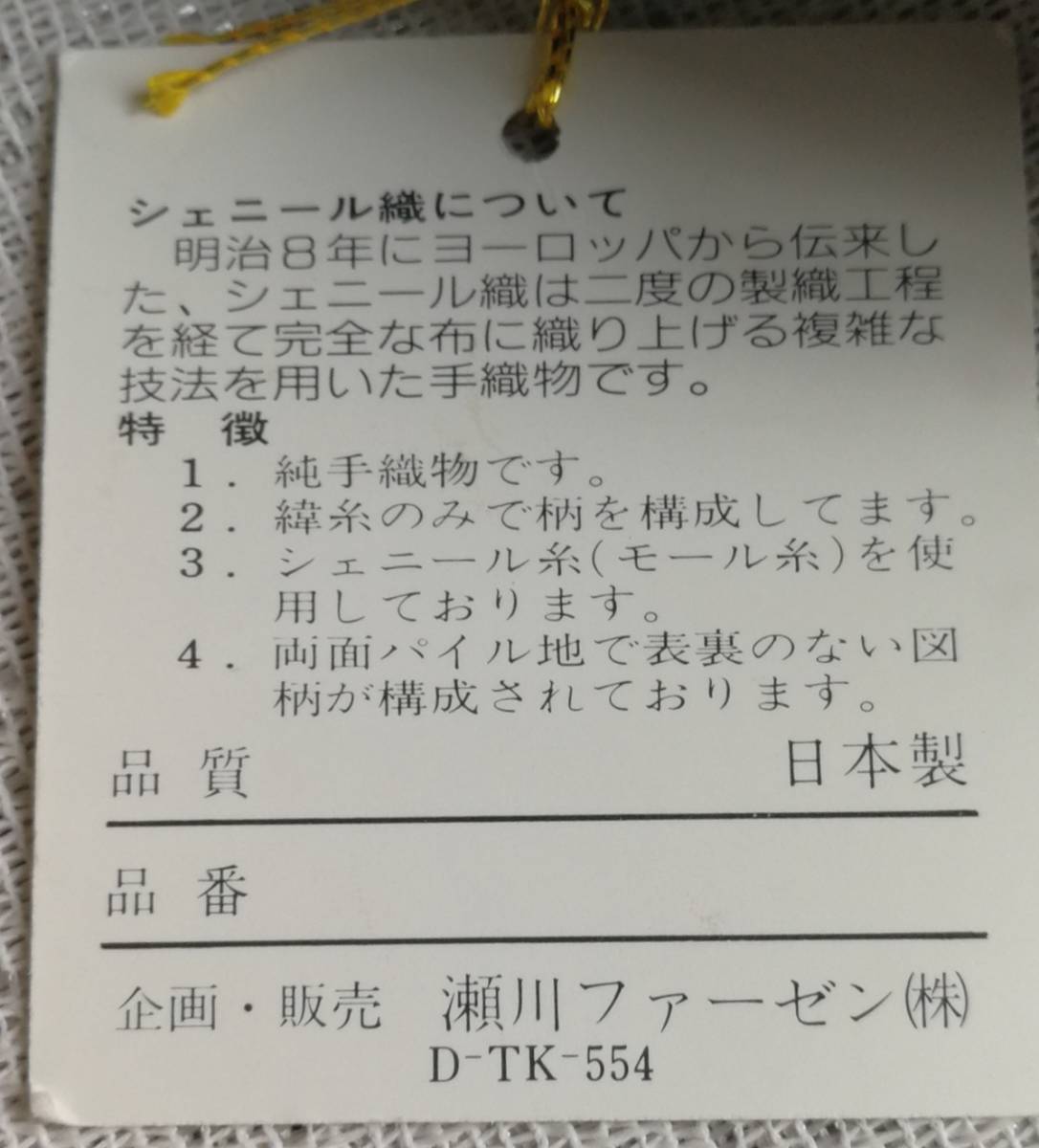 • 備考:黒のサテン地のキルティングの中央にシェニール織りの布がついています。