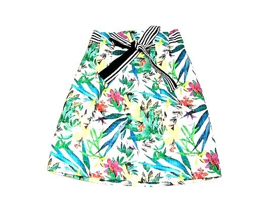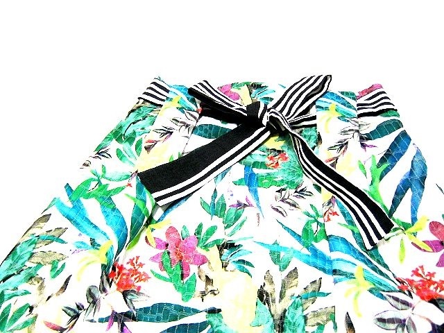 イタリア製 PAOLA FRANI パオラフラーニ 草花柄のリボン飾りスカート ボタニカル