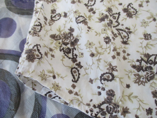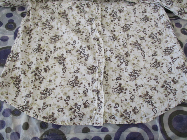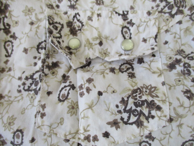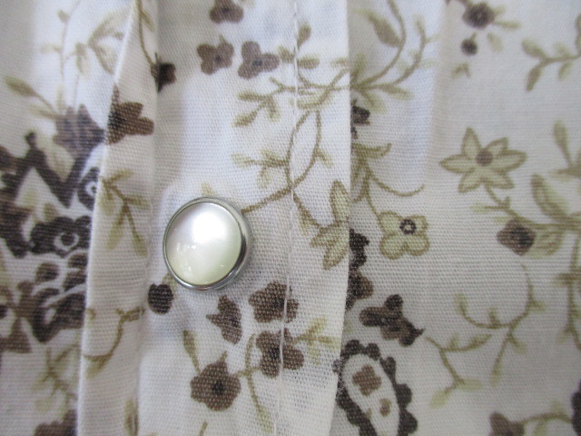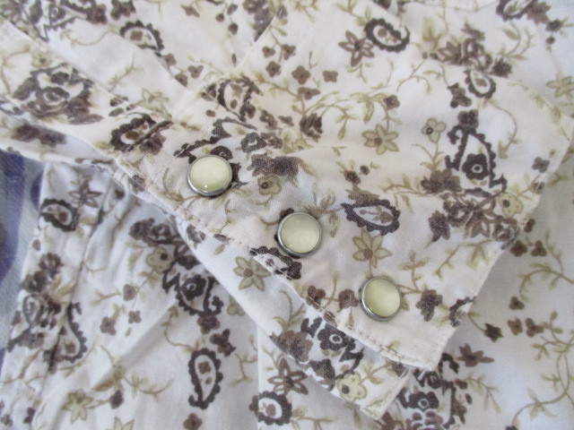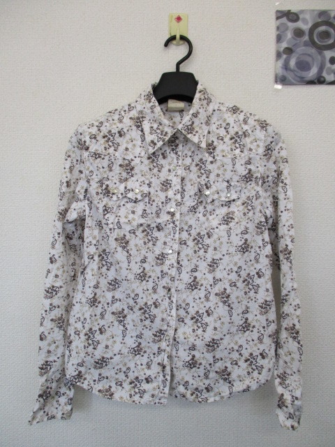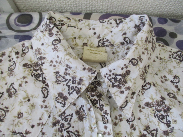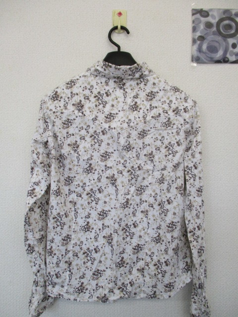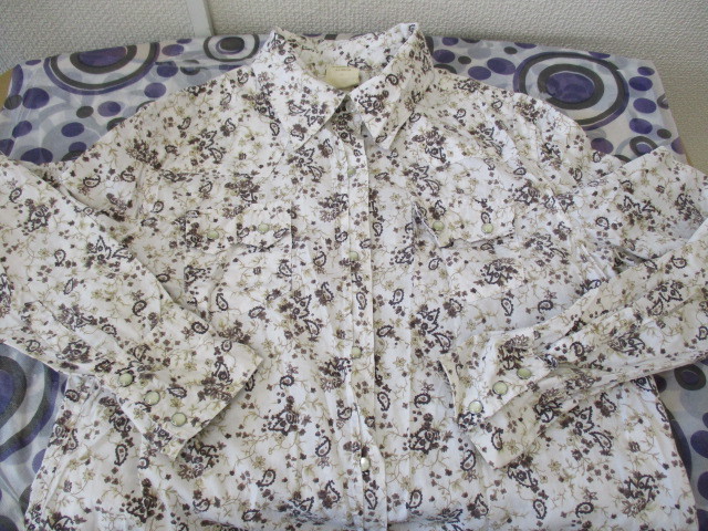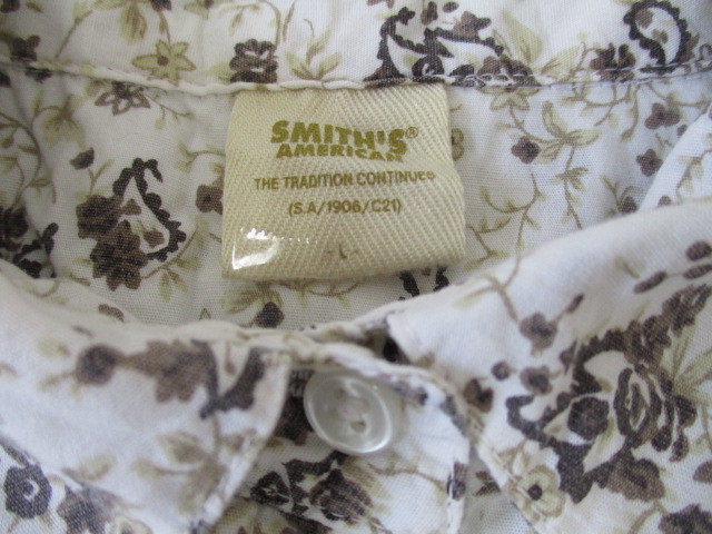★SMITH'S 長袖シャツ お花 総柄 ポケット 白×ブラウン(L)