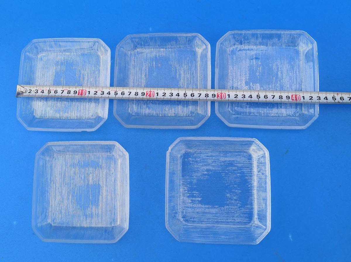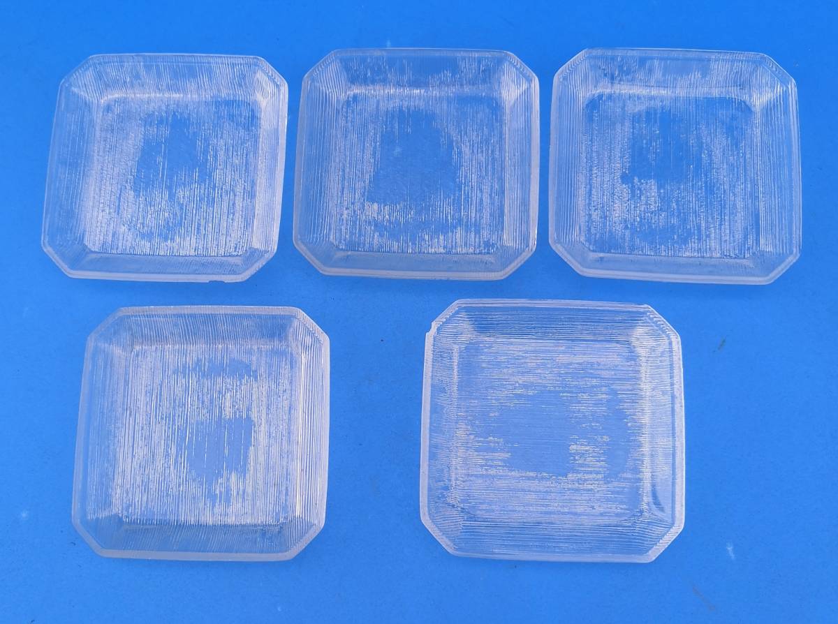 昭和レトロガラス角皿直径14cm5枚2枚に欠け有ります