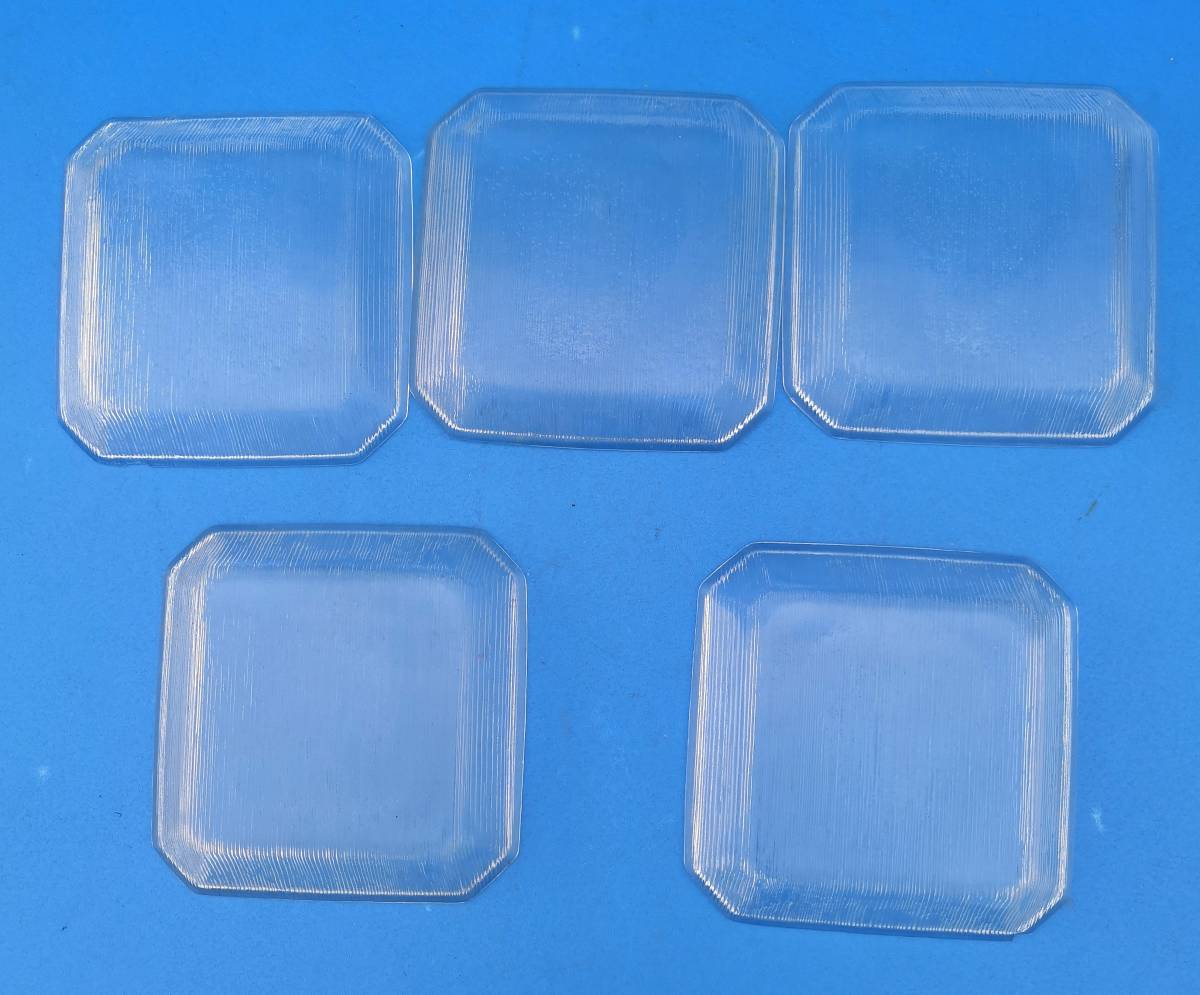 画像のガラス角皿です5枚の内2枚に欠け有ります。