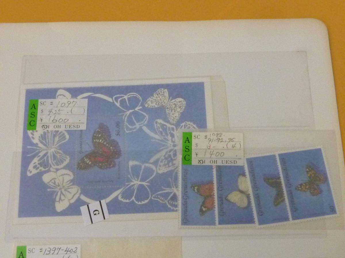 21MI S №46 世界各国 蝶切手 グレナダグレナディーン・他 計17種+小型シート2種 2リーフ 未使用 ※説明欄必読