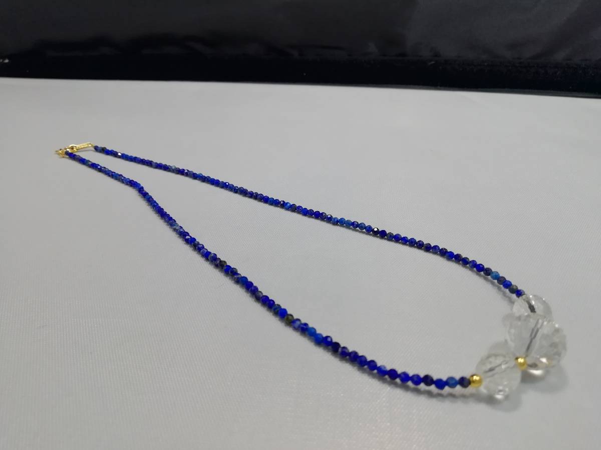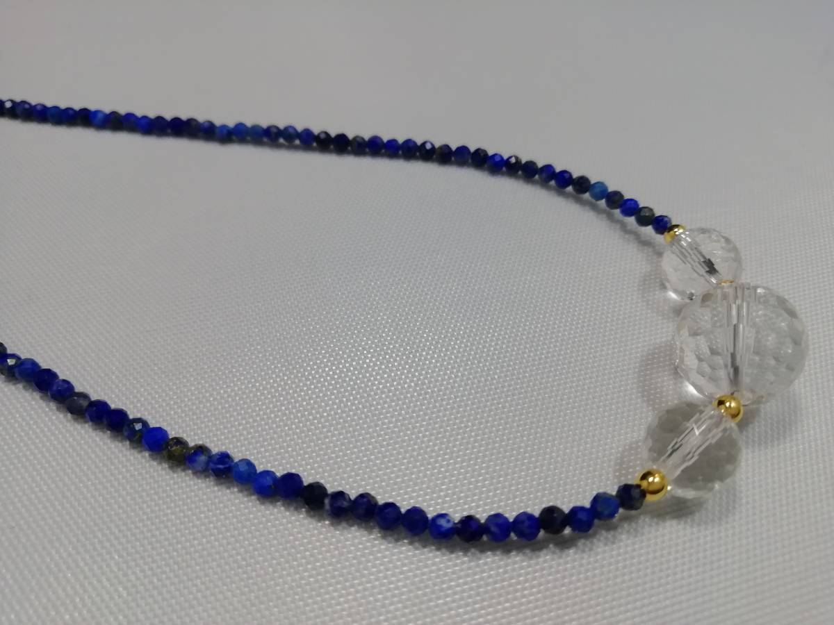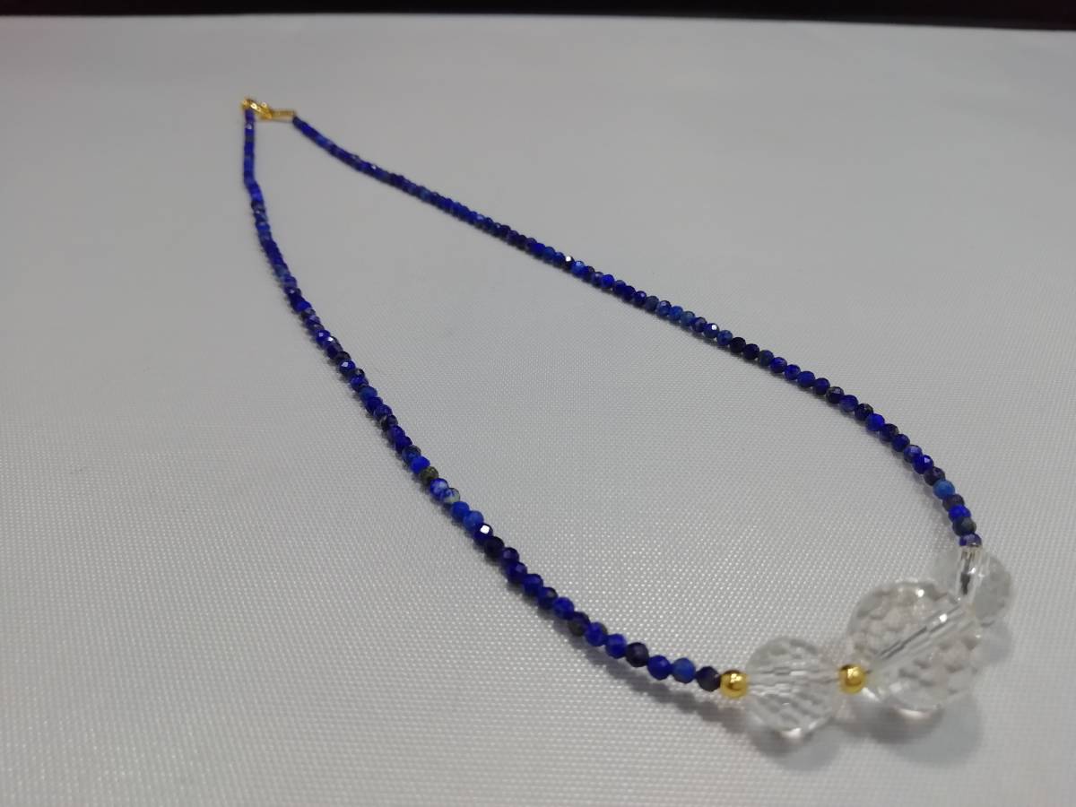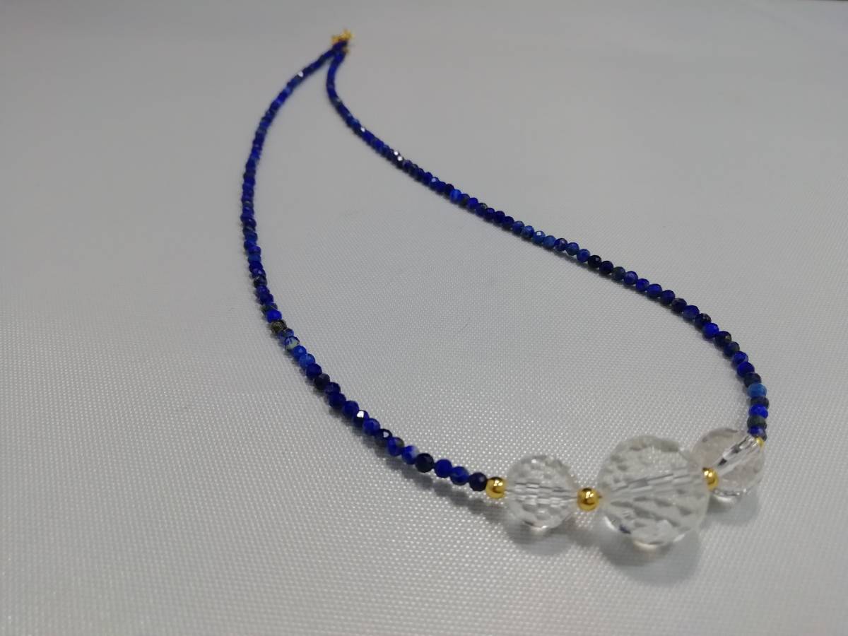 天然ラピスラズリ&水晶カット&デザインネックレス