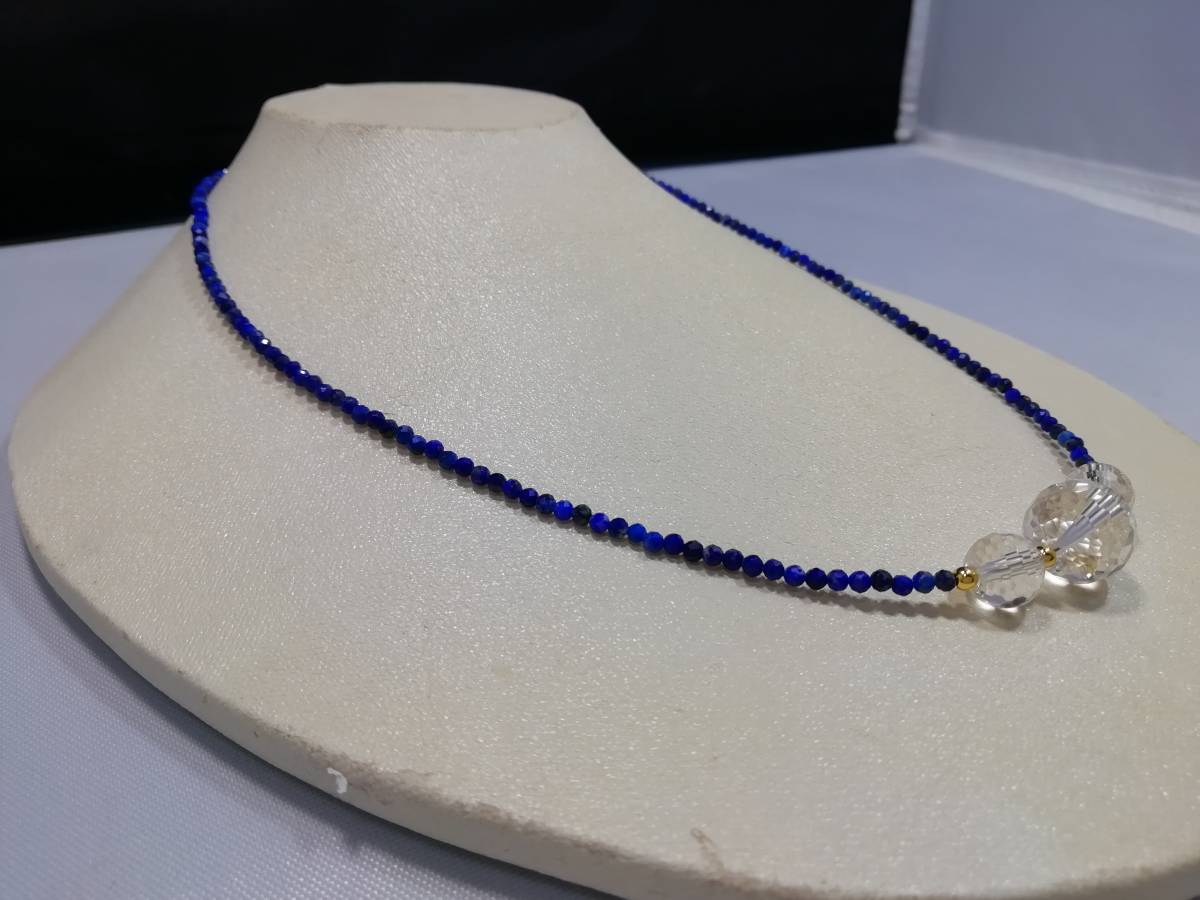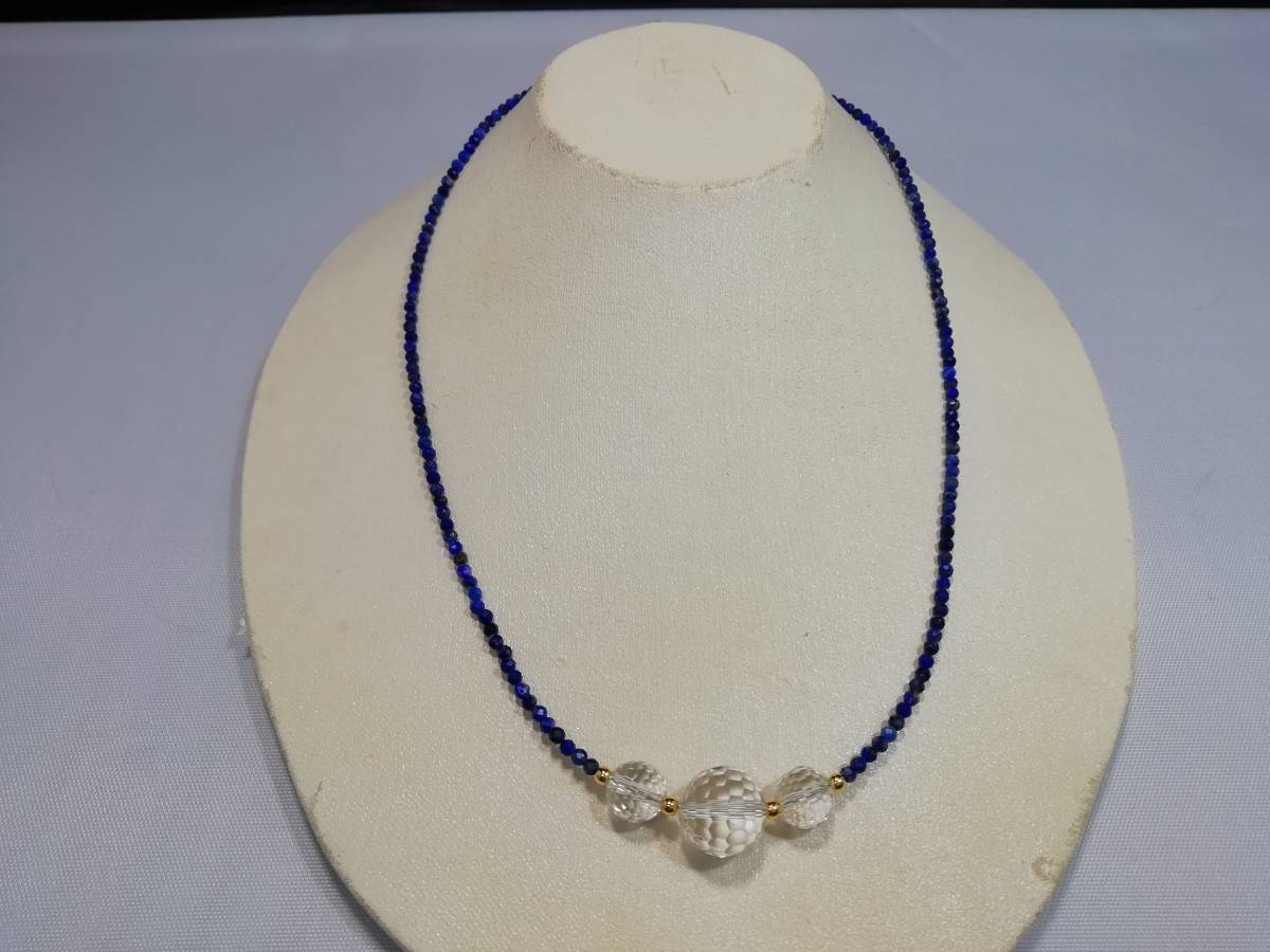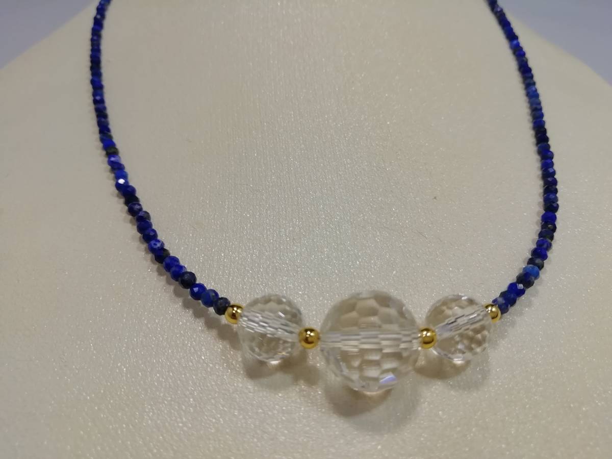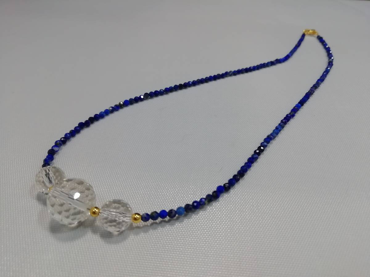 天然ラピスラズリ&水晶カット&デザインネックレス