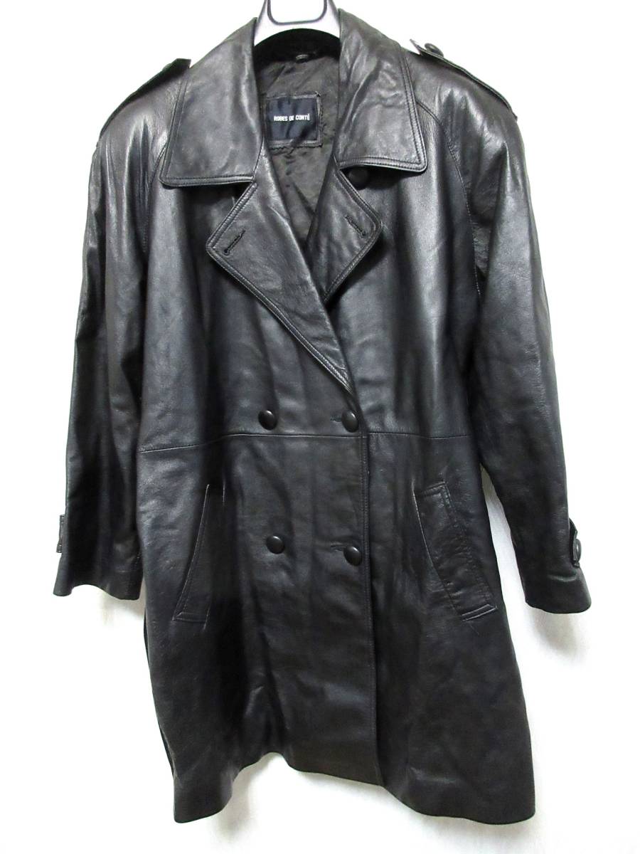 ローブデコンテ ROBES DE CONTE レザー ベルト付き コート 黒 ブラック Z33