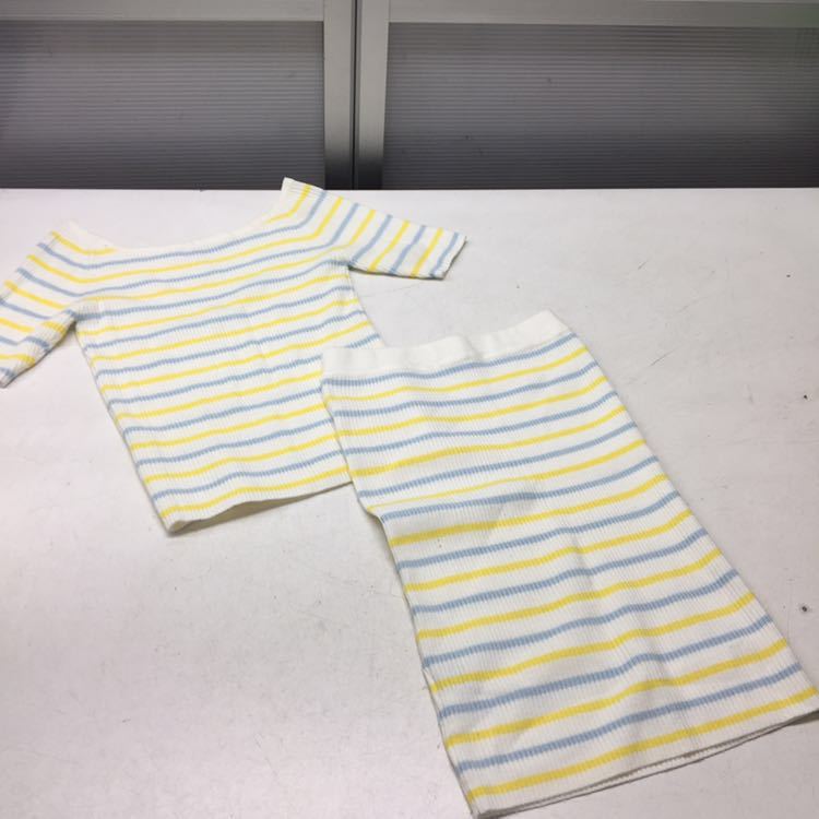 送料無料★DILGA★セットアップ ボーダーニット 上下セット★半袖ニット タイトスカート★フリーサイズ#30526sjj17